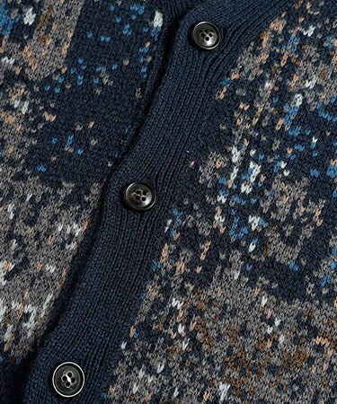 A cardigan that expresses FDMTL's original rag pattern in jacquard.
