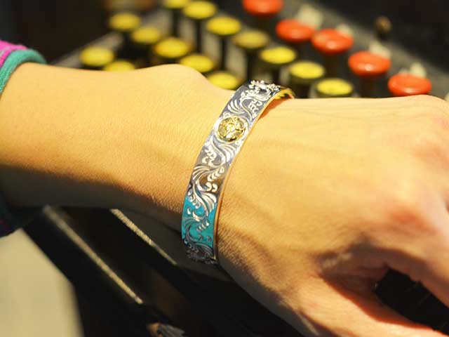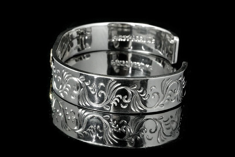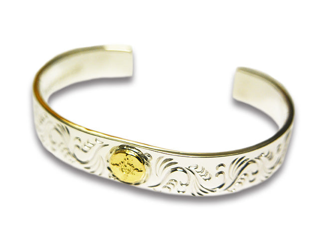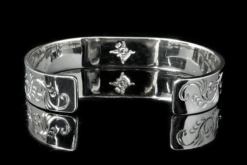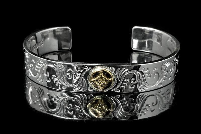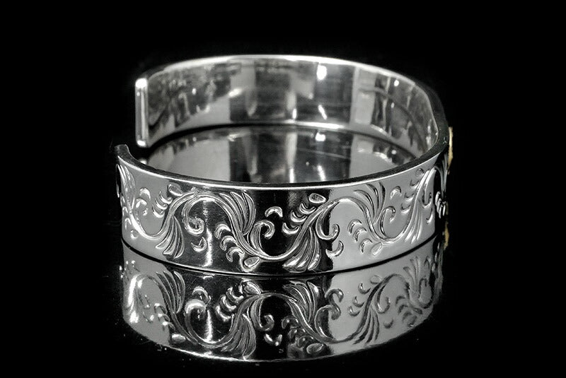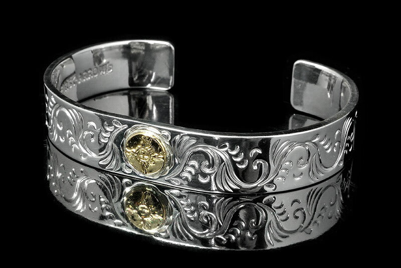 FIRST ARROW'S Flat Hammered 12mm Arabesque Carving Bungle with K18 BR-026