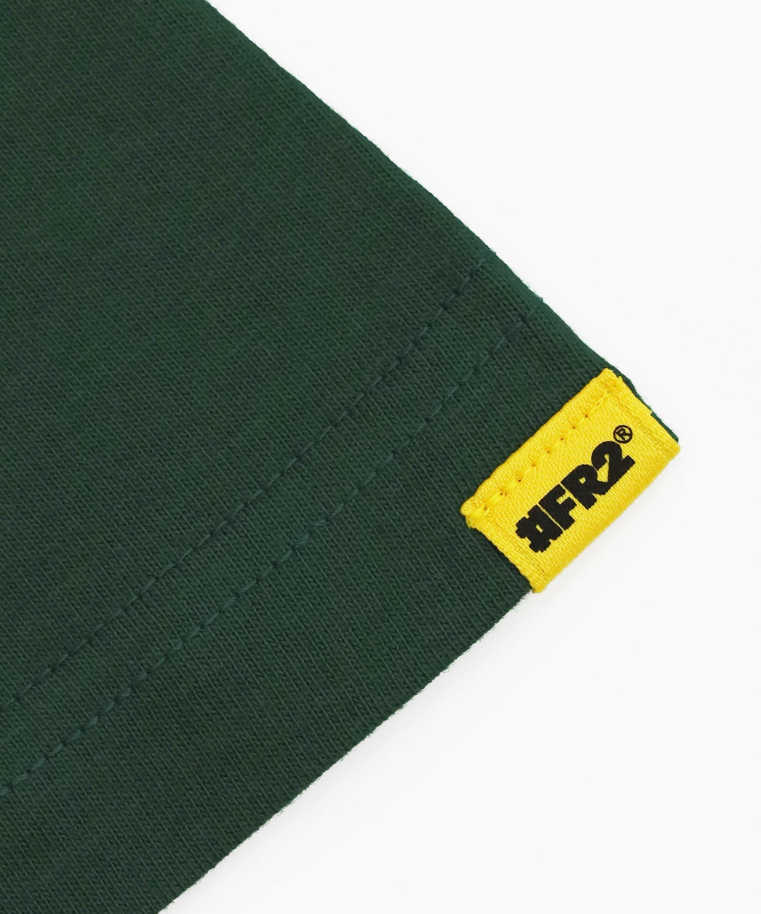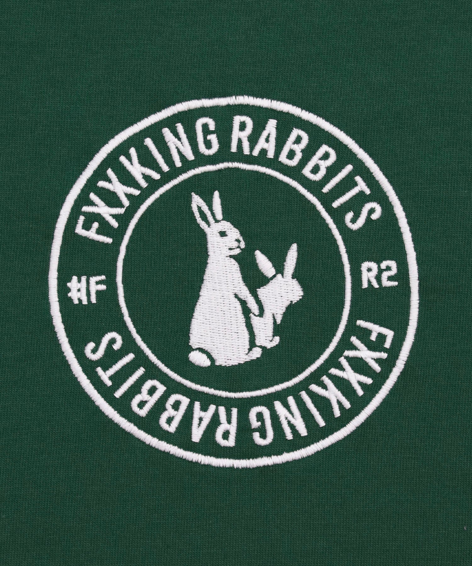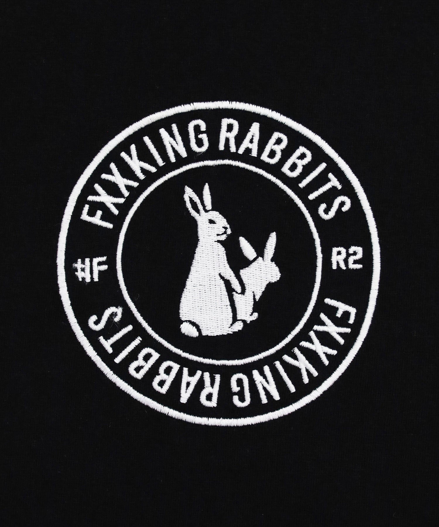 A T-shirt with an embroidered design on the front that combines a logo in a circle with an icon in the center.