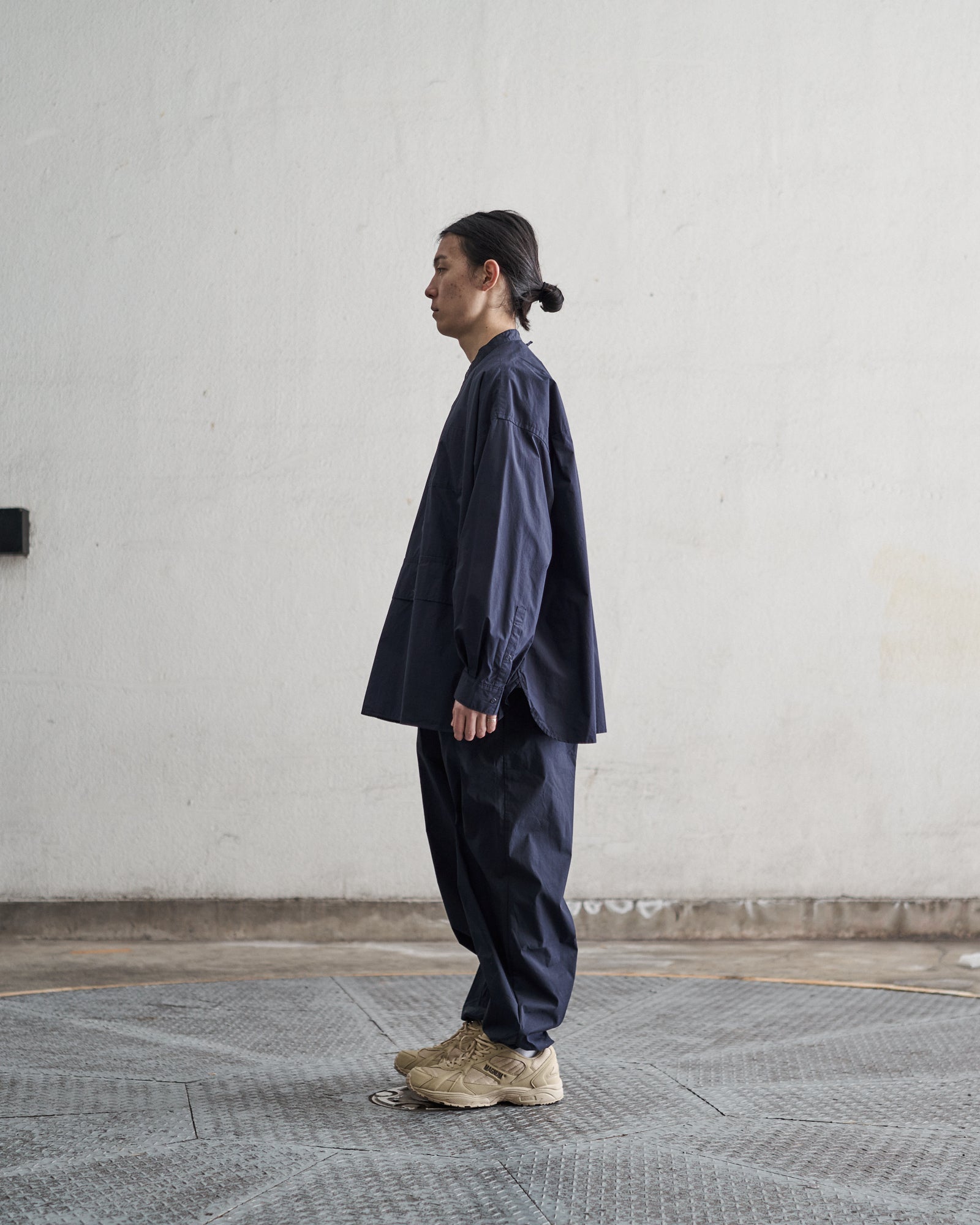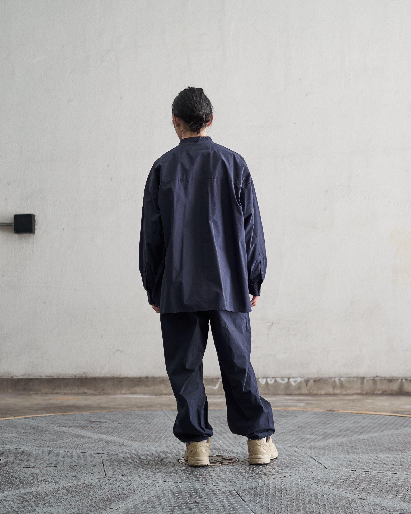 FreshService's classic cargo pocket utility shirt with a large flap pocket for storing tools on the body is reintroduced in a new material. Water-repellent poplin with the natural texture of cotton and the superior durability of nylon. The band collar has a relaxed silhouette with drop shoulders and a size that can easily be worn over a jacket or sweatshirt for a variety of outfits.
