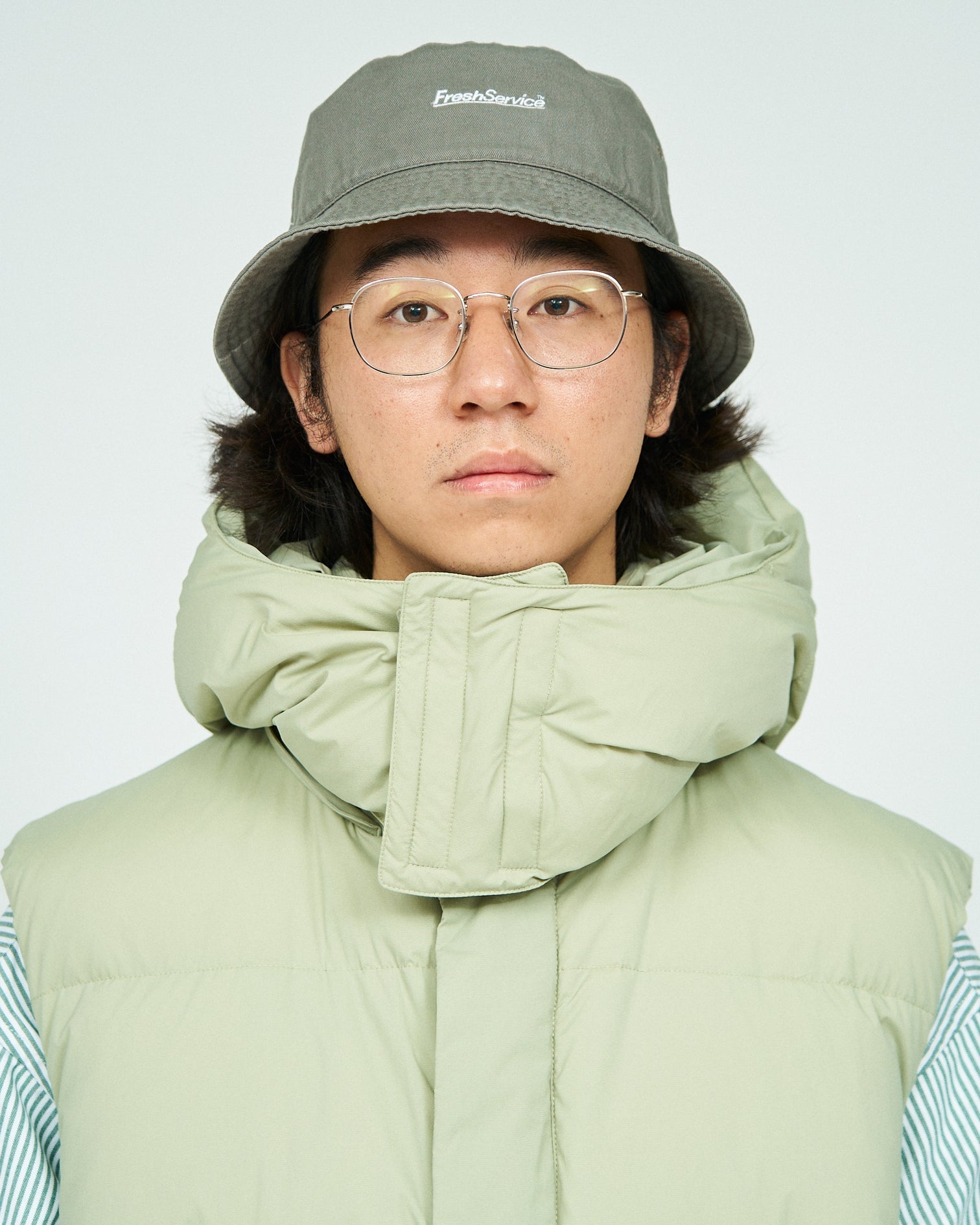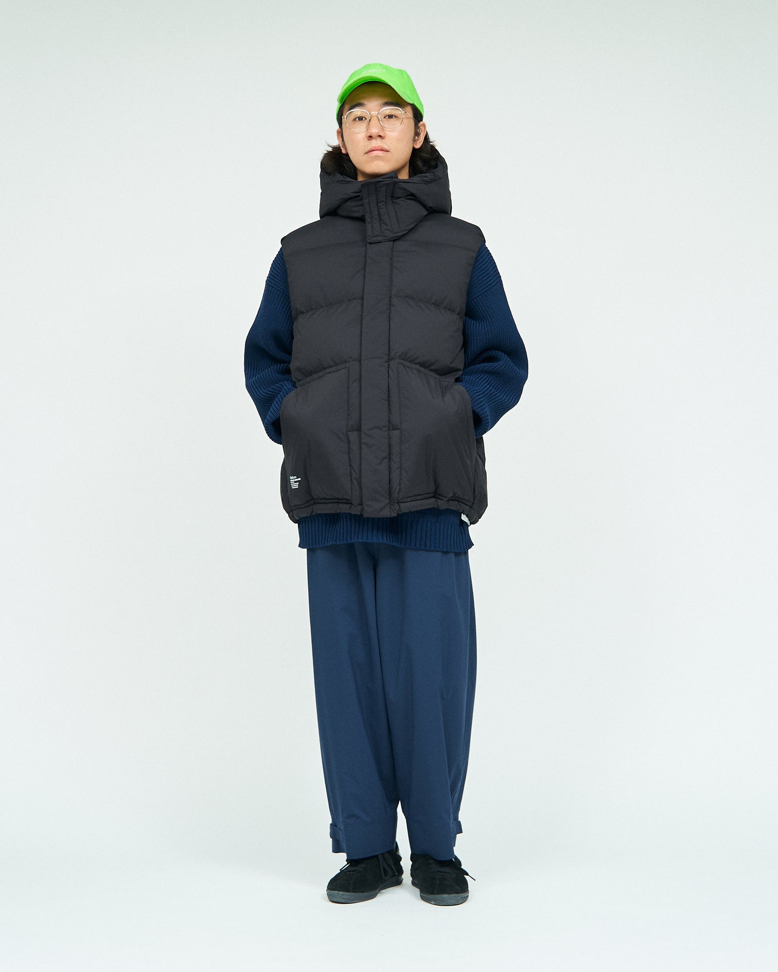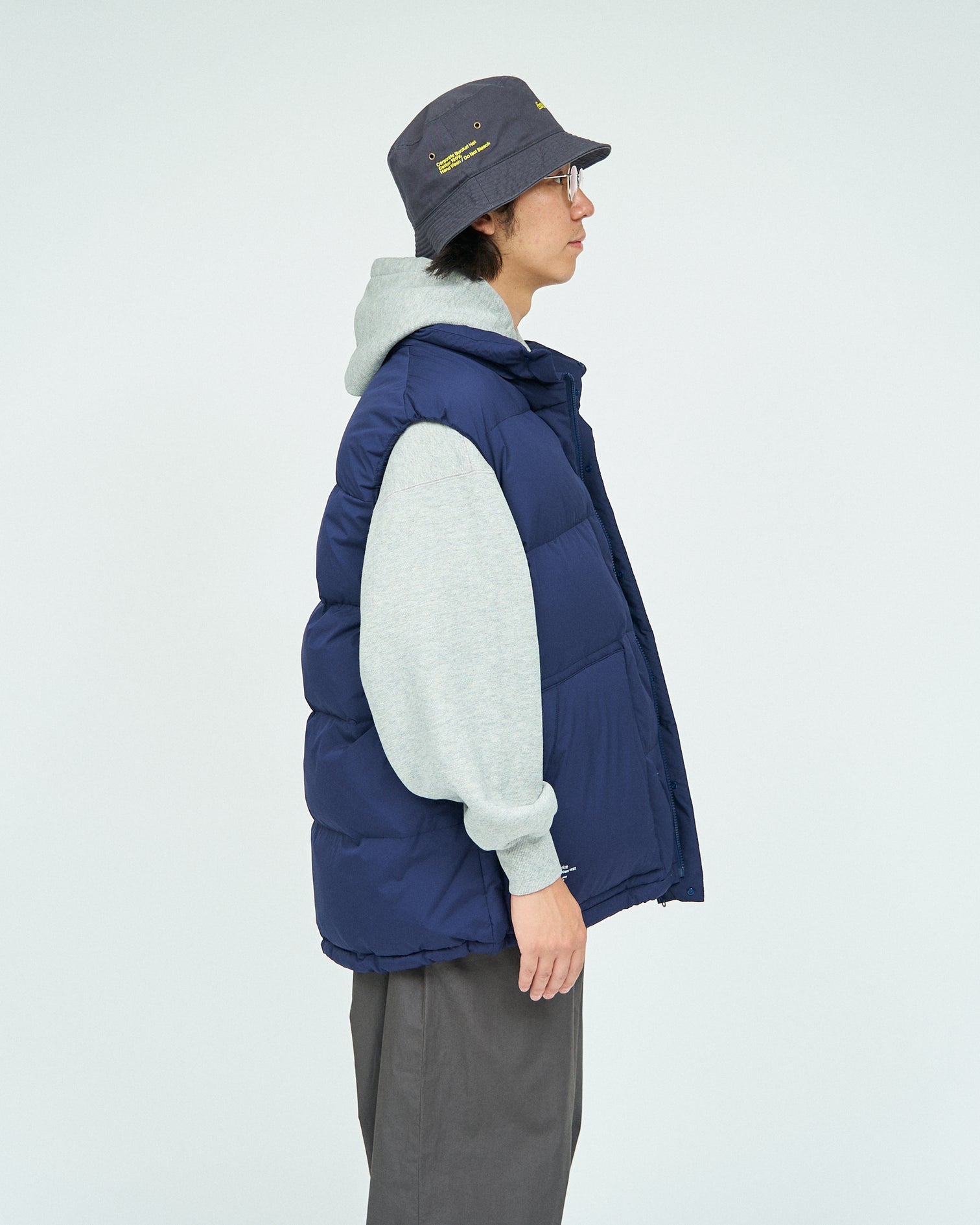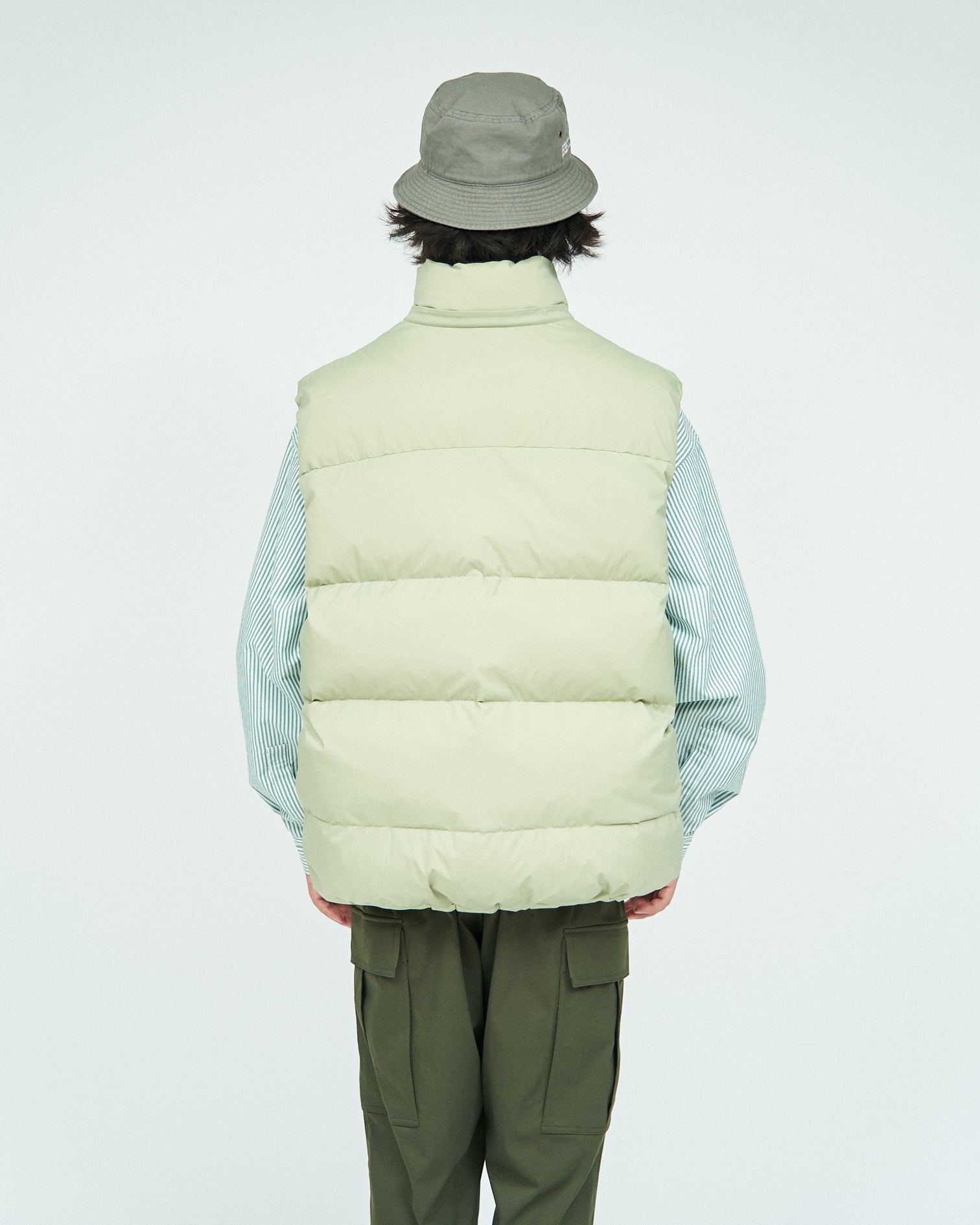 A corporate down vest inspired by the uniform of a fictional delivery company. The body has been updated to micro ripstop nylon 66. which is highly abrasion resistant and smooth to the touch. The outer surface is water repellent. and the inner surface is coated with a water-resistant and breathable coating. making it comfortable to wear in both urban and light outdoor situations. While it has a voluminous form typical of FreshService. the drawstring at the hem allows you to adjust the silhouette. and it is also attractive for its stress-free lightness. In addition to a detachable hood. you can find a style that suits your taste with a wide range of colors.