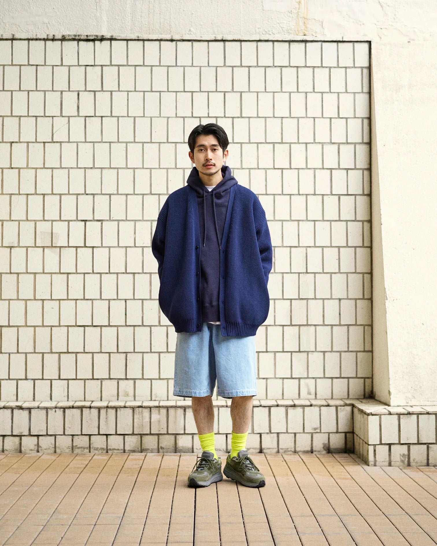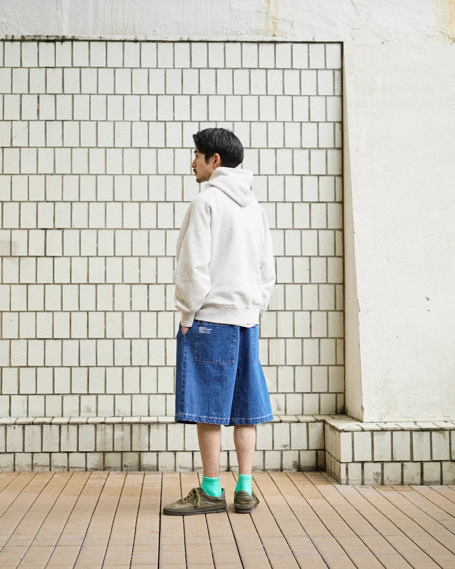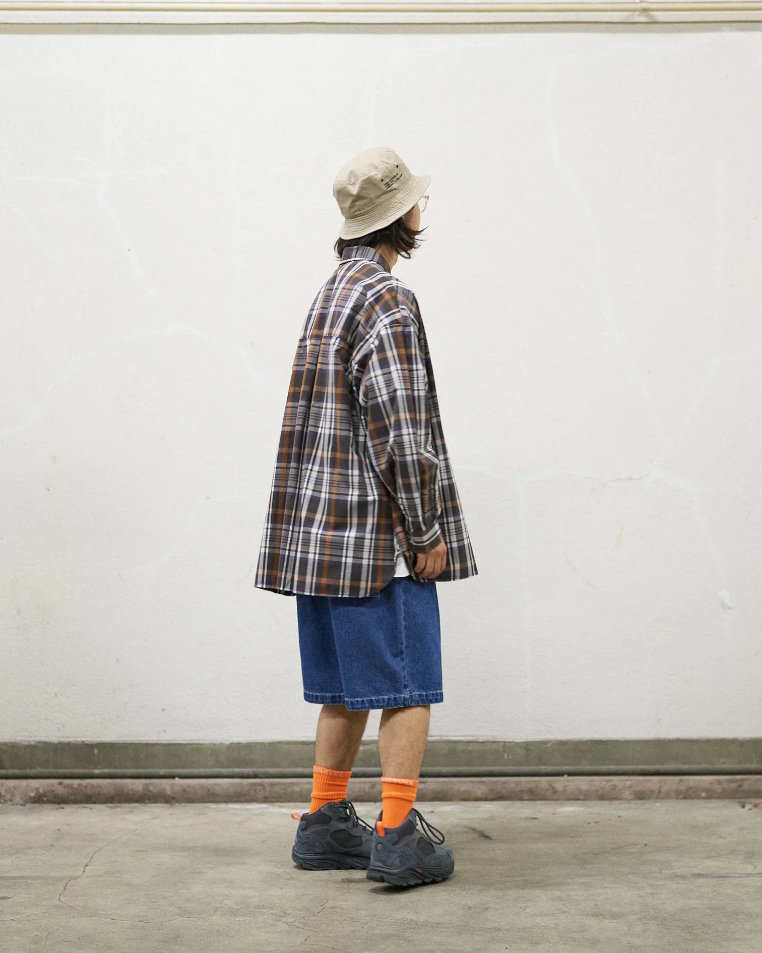 The 13 oz moderately thick indigo denim has a tough texture like workwear. and you can enjoy the change in color that fades expressively the more you use it.