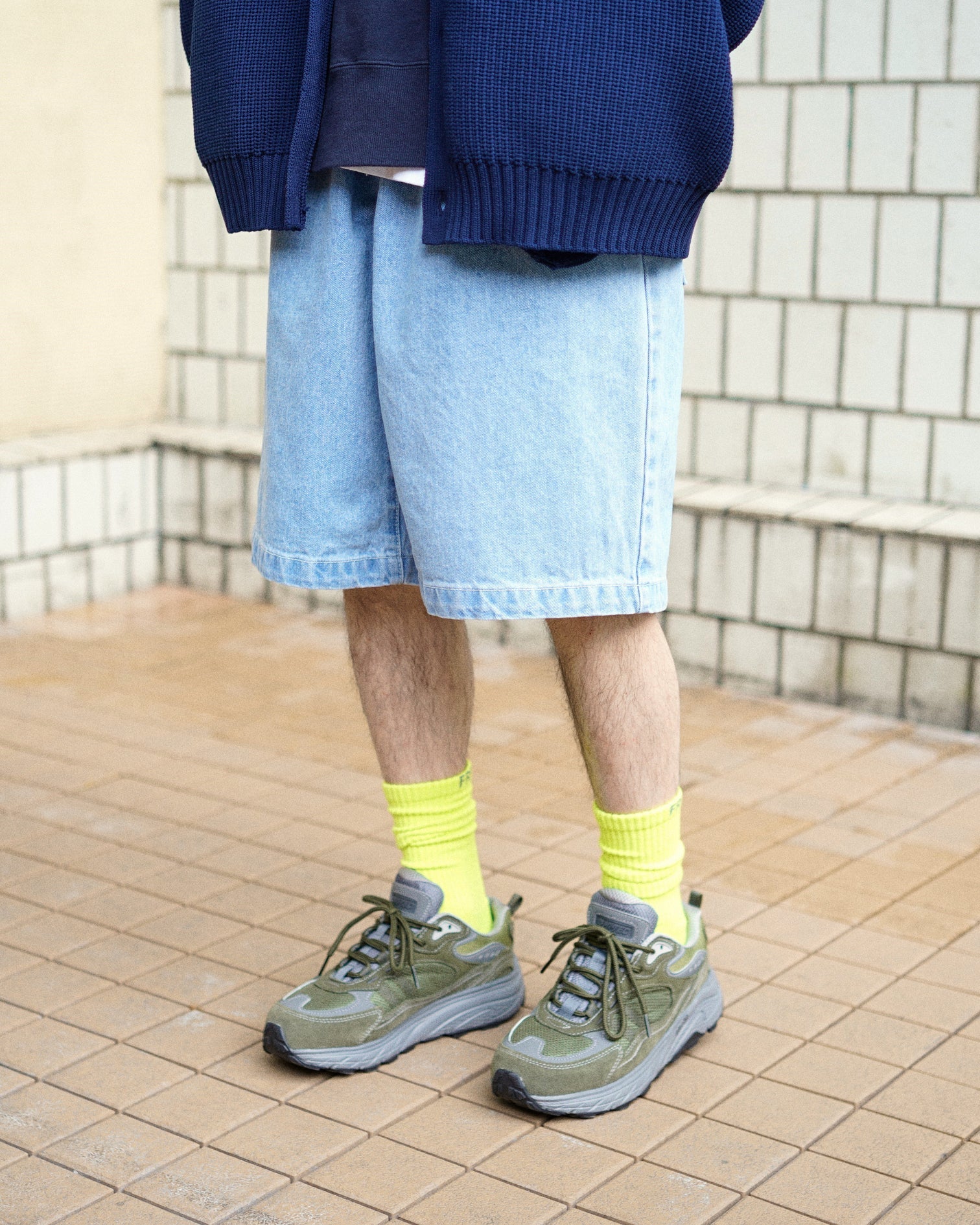 The “Corporate Easy Pantsâ€? inspired by the uniform of a fictitious delivery company. have been renewed with denim material.