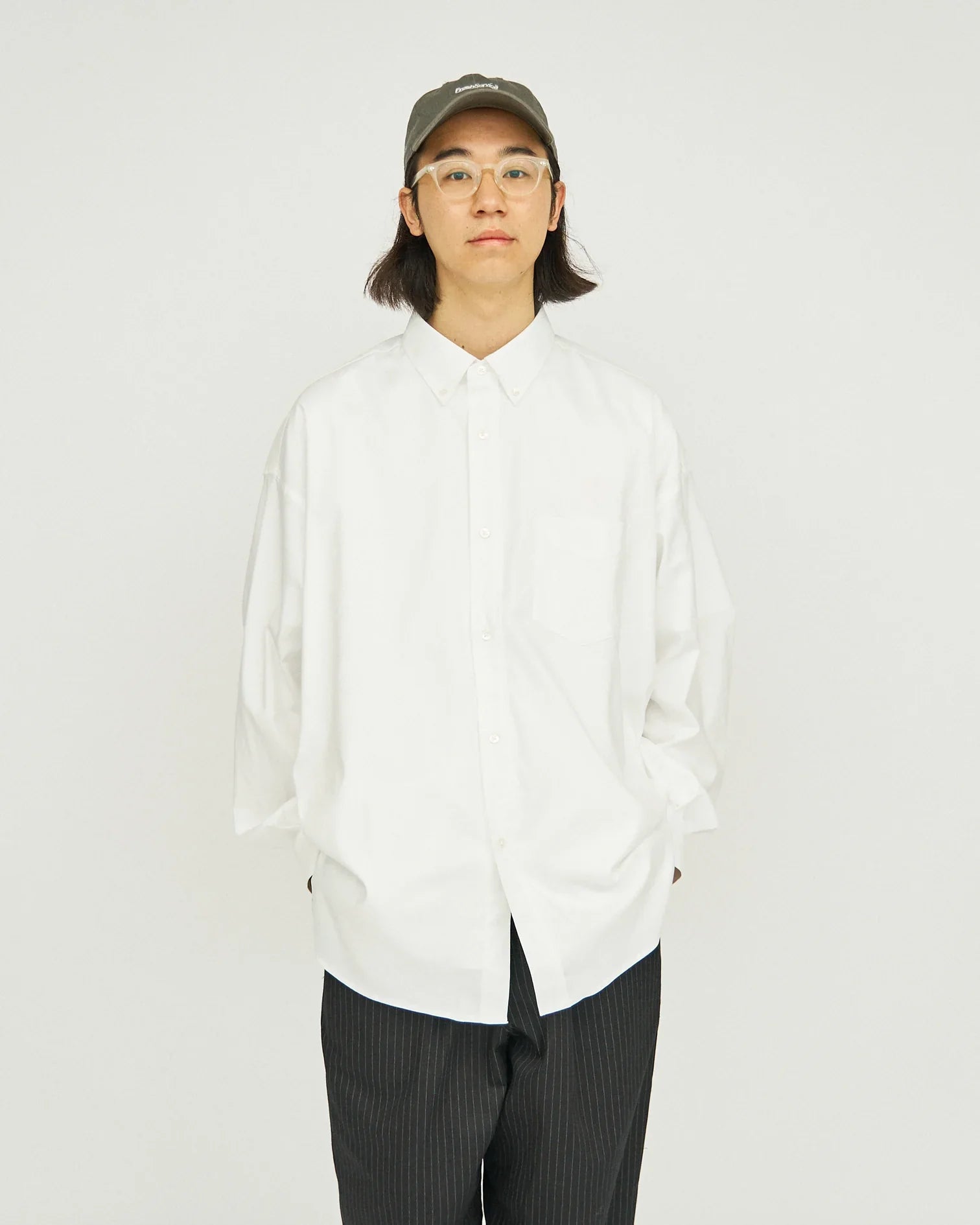 Made with polyester threads with a special cross section. it has a cotton-like appearance while also being quick-drying and dry to the skin. This relaxed button-down shirt has a relaxed look and a simple appearance at first glance. but it is a typical FreshService item with a large pocket hidden in the side seam. It dries quickly even after washing. making it a piece you will want to wear every day.