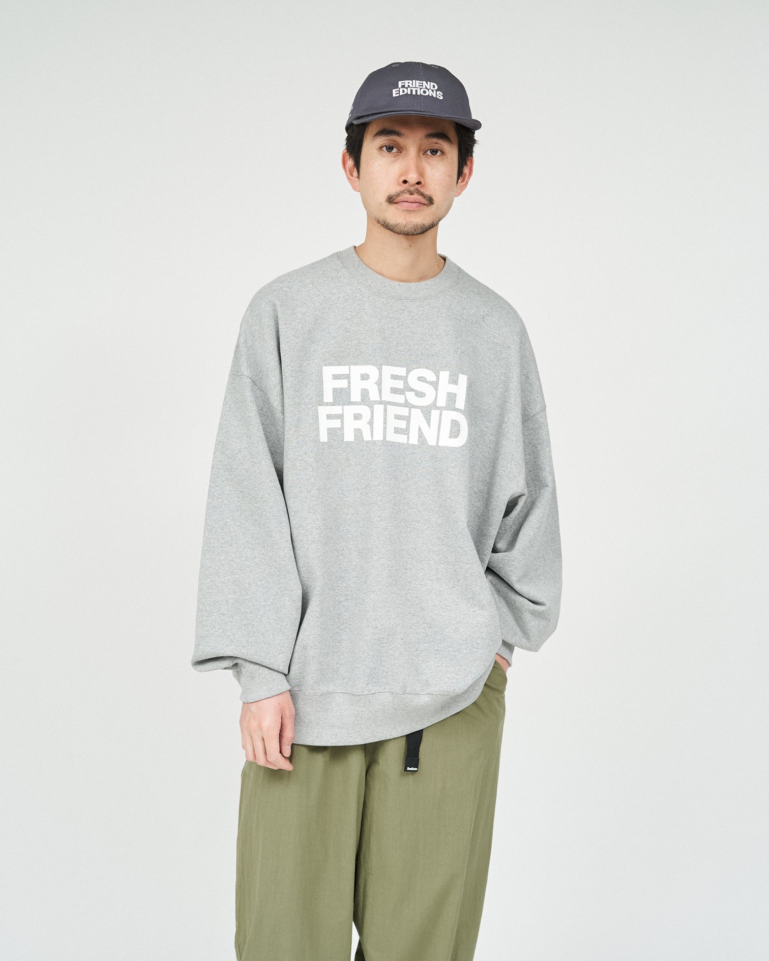 A sweatshirt pullover born from a collaboration between FRIEND EDITIONS and FreshService. With the keywords "FRESH FRIEND" boldly printed on the front and "SERVICE EDITIONS" on the back. this piece symbolizes the relationship between the two. It features a loose silhouette and naturally dropped shoulders. making it suitable for unisex wear. The simple yet assertive design also looks great with layered styles. The fleece-lined sweatshirt material is gentle on the skin and can be used for a long season. from the change of seasons to using it as an inner layer in the middle of winter. This sweatshirt will be the main focus of your styling. adding a subtle message to your daily life.