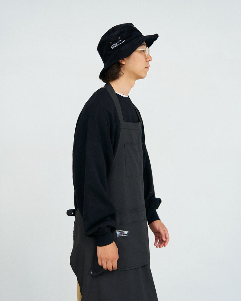 A flame-resistant material blended with Teijin Frontier's functional fiber. Solotex. It is designed to be useful for activities such as bonfires and winter BBQs. The apron features tool pockets on the chest. waist. and pen slots. making it suitable for a wide range of uses. including camping and gardening. *Please note that while it possesses flame-resistant properties. it is not a non-flammable material.