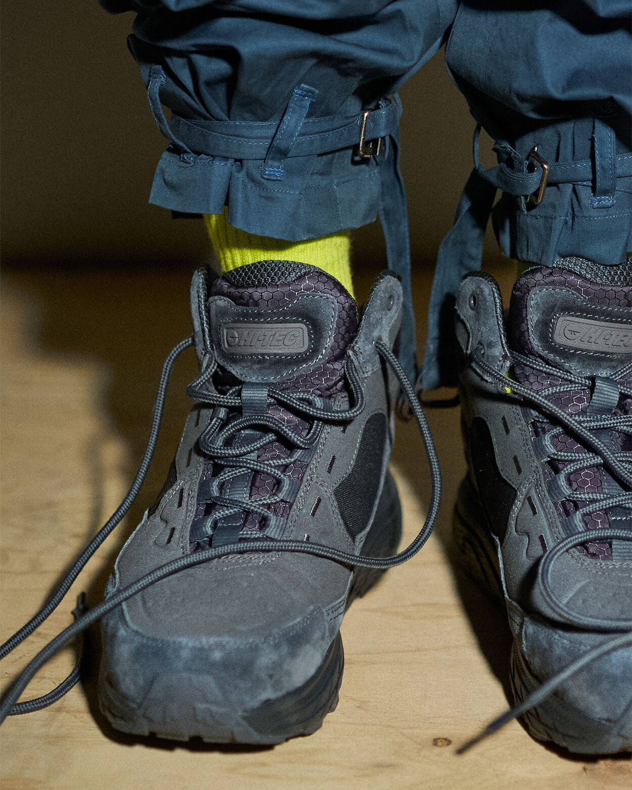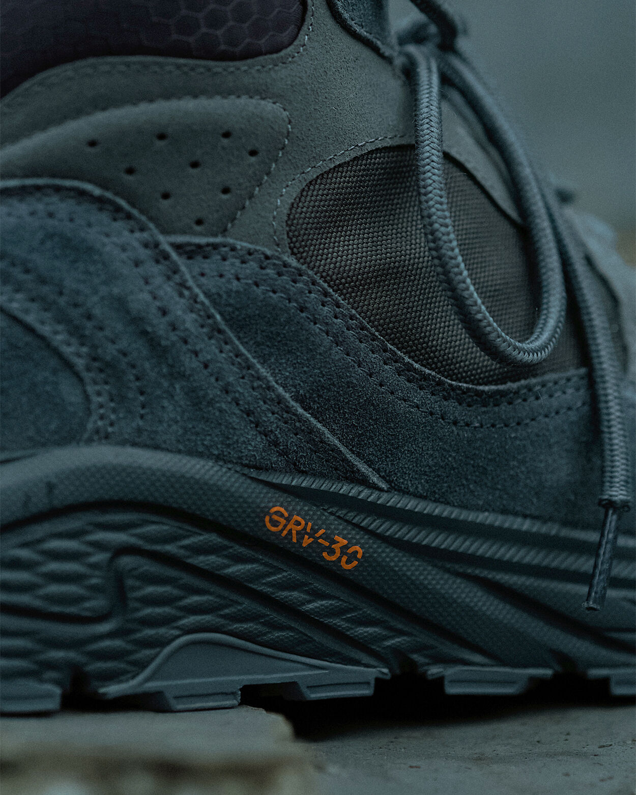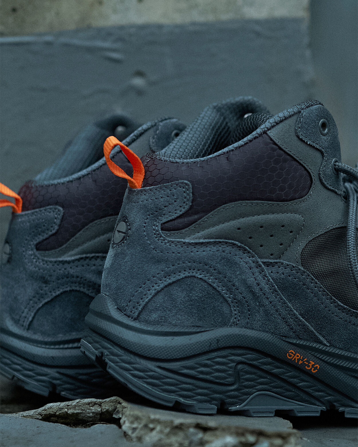 Based on the "EASTEND" hiking shoes with 90's outdoor details. updated in one colour concrete grey using luxurious pigskin suede with rich texture.