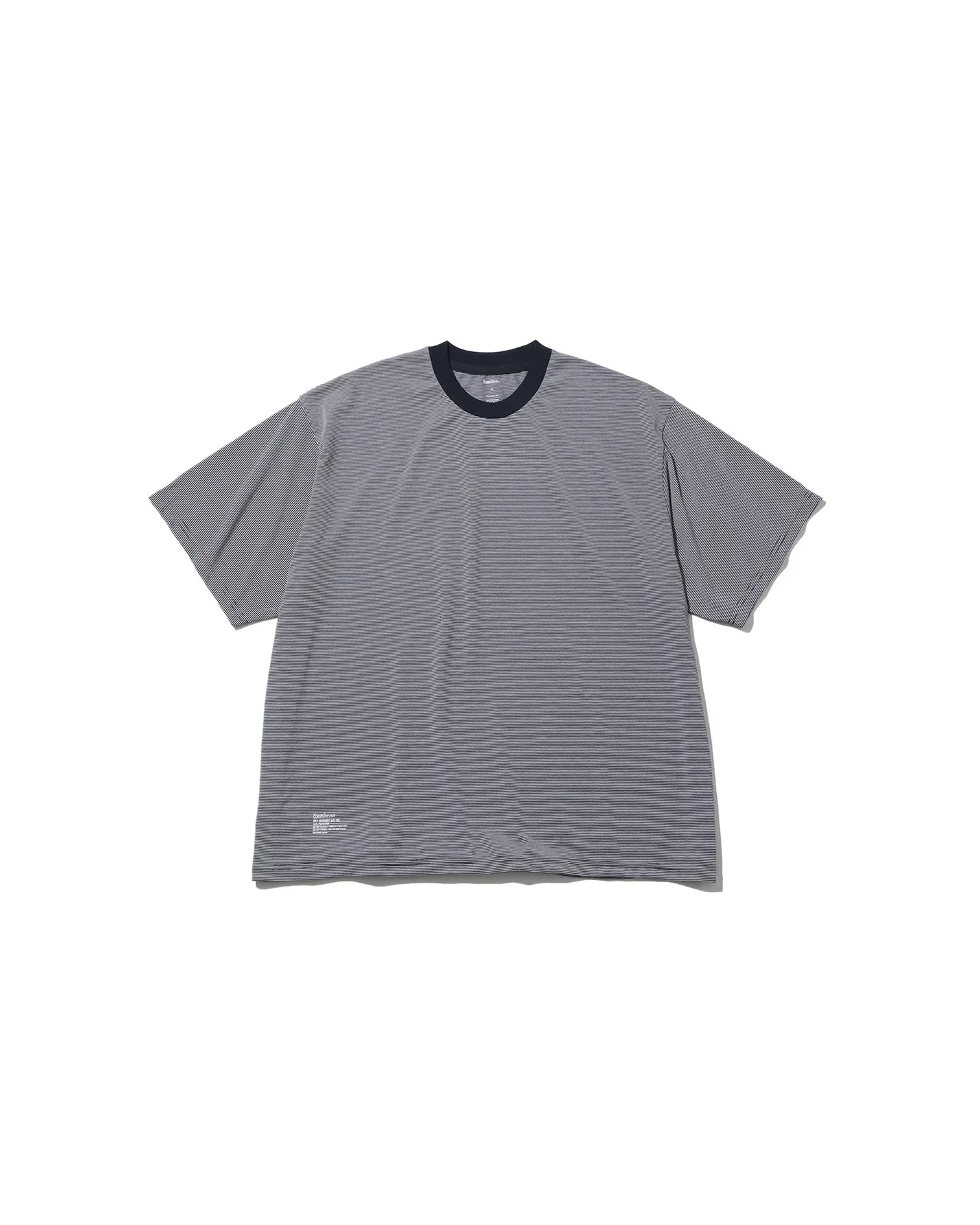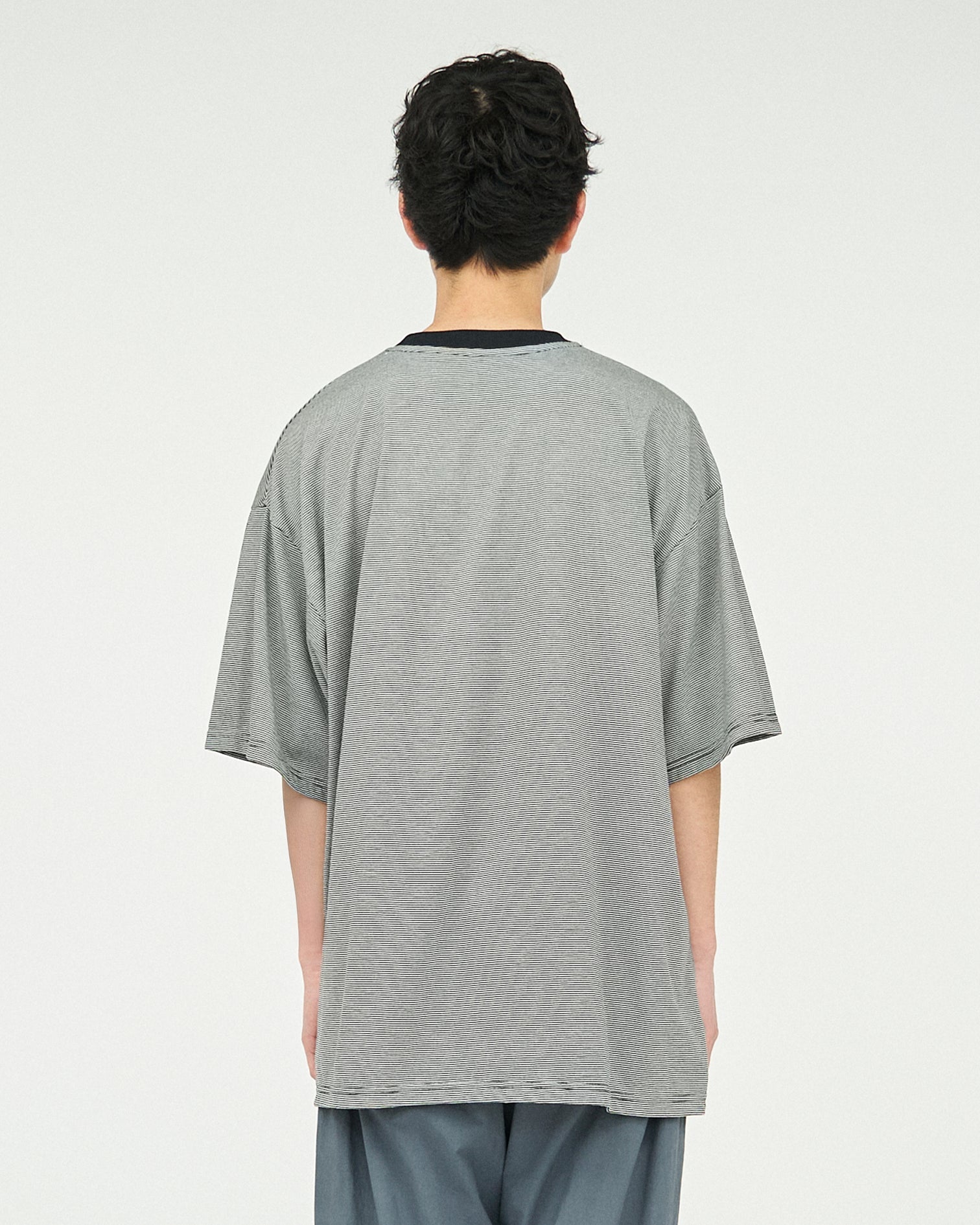 A short-sleeved T-shirt with micro-borders that has excellent quick-drying properties. Made from polyester thread with a special cross section. it has a cotton-like appearance while being highly functional. Its excellent quick-drying properties keep it smooth to the touch. and it is also easy to care for as it does not wrinkle easily. The fine-pitch borders go well with any pants. making it a great piece to use as the main piece of your outfit. or as an accent piece when worn as an inner layer.