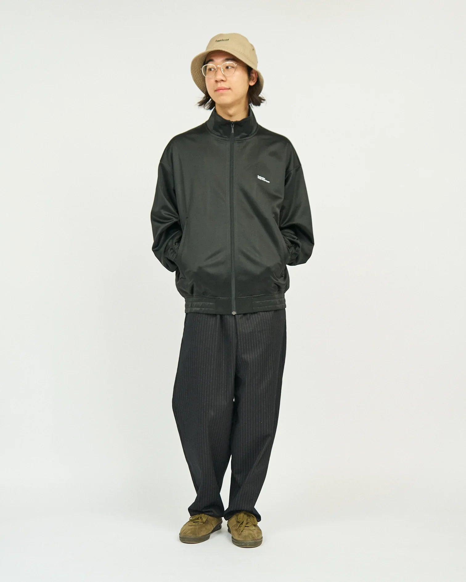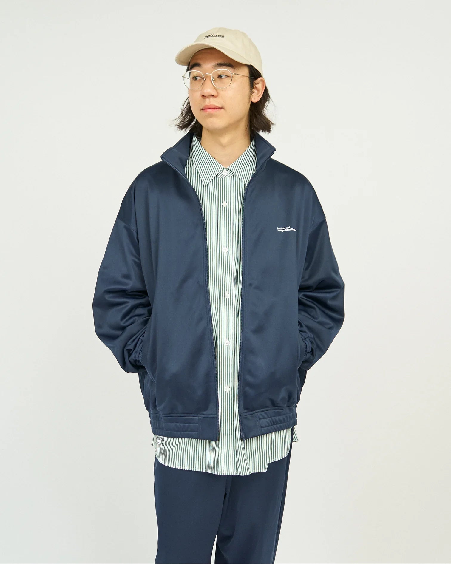 A zip-up blouson made of classic jersey material with an elegant sheen.