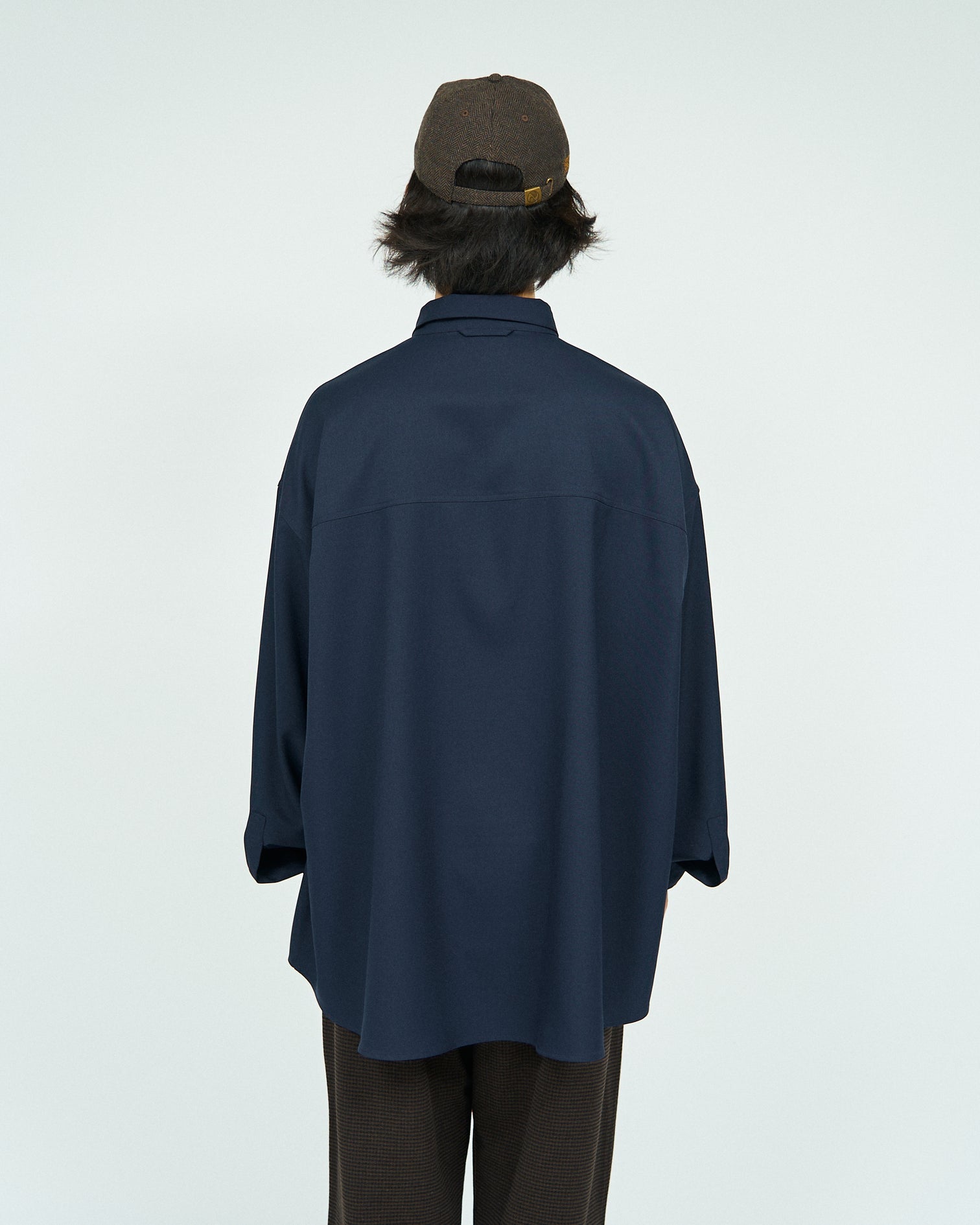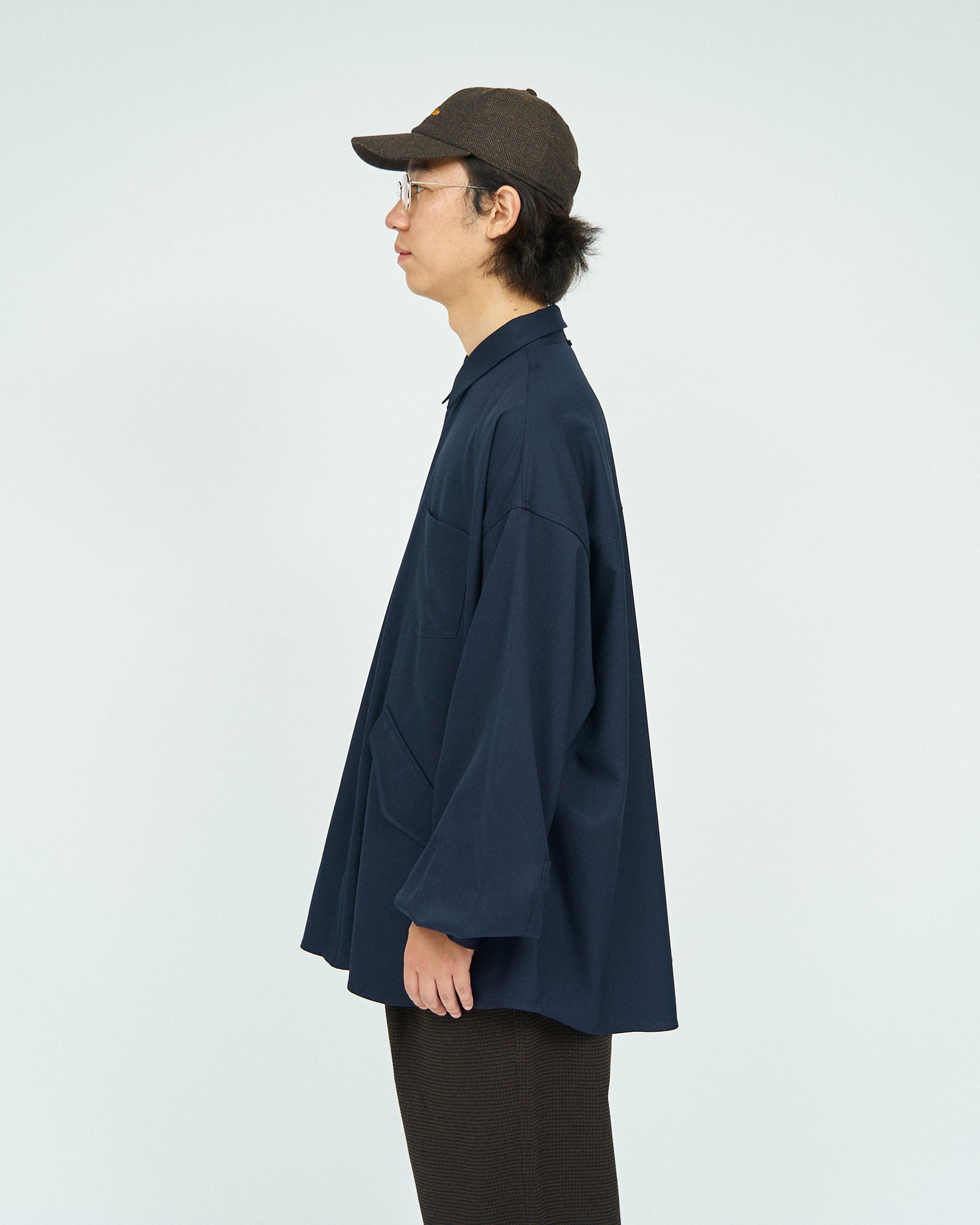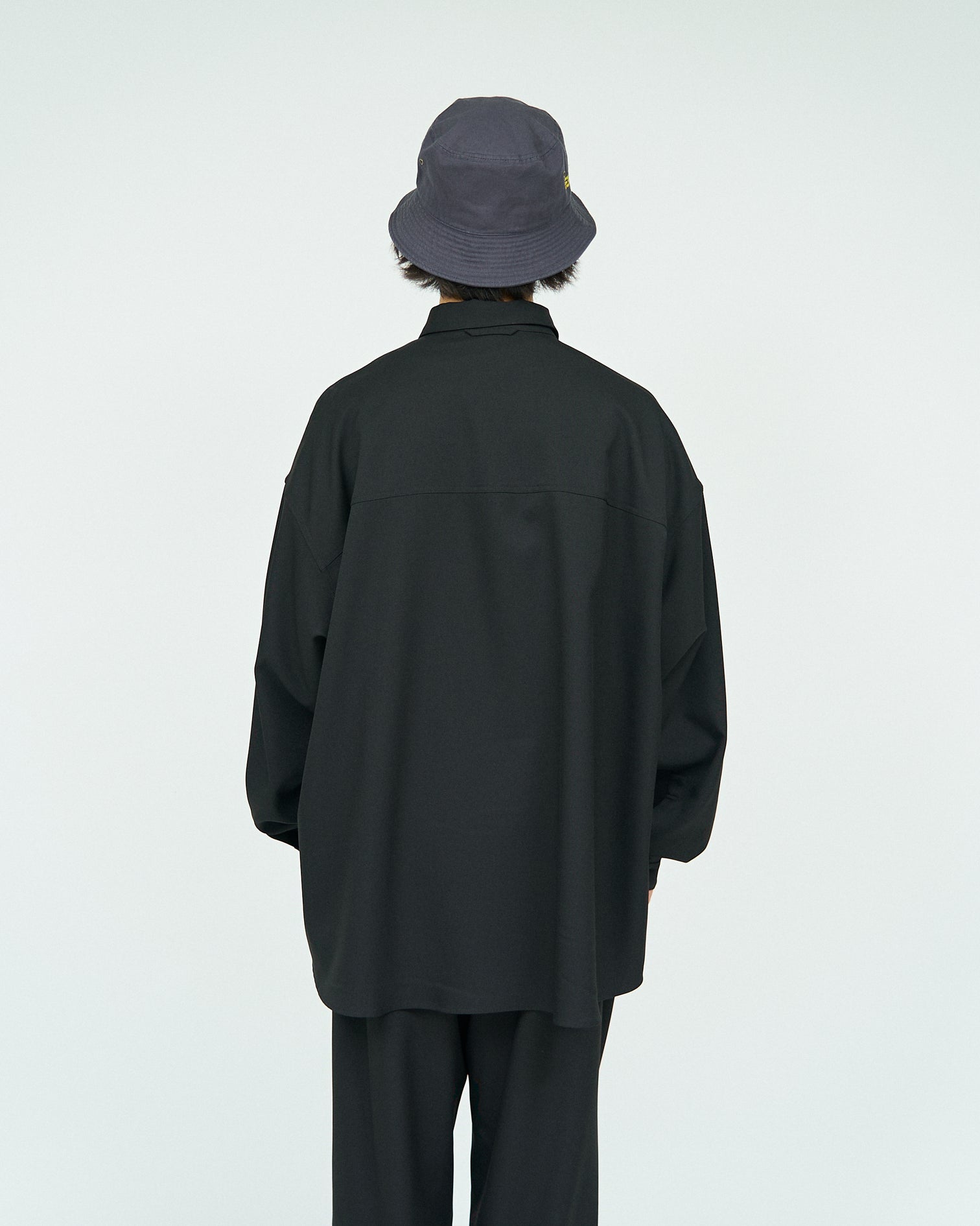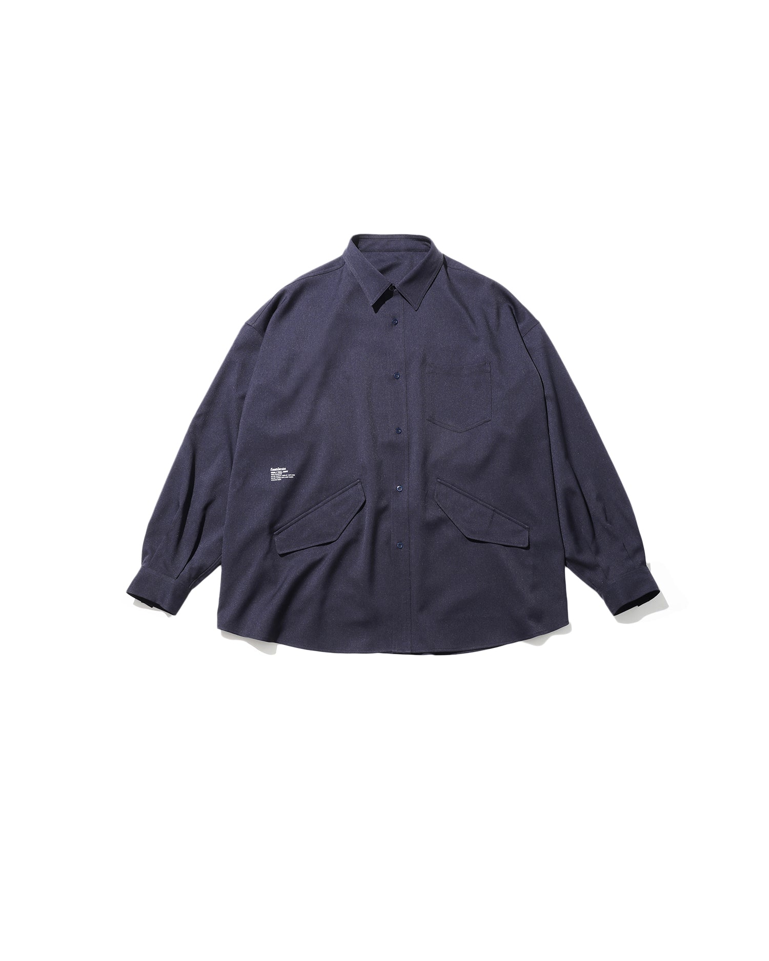 A military shirt with a smooth texture and an elegant sheen. It has a wool-like feel. but is made of functional material that is highly stretchable. resistant to pilling. and can be washed at home. The flap pockets. a detail of military pants. accent the design. making it easy to incorporate into any style. It can also be worn as a casual set with pants made of the same material.