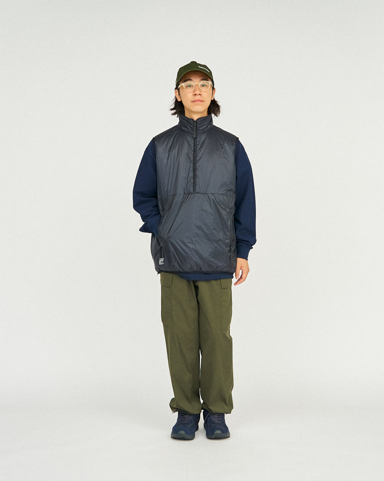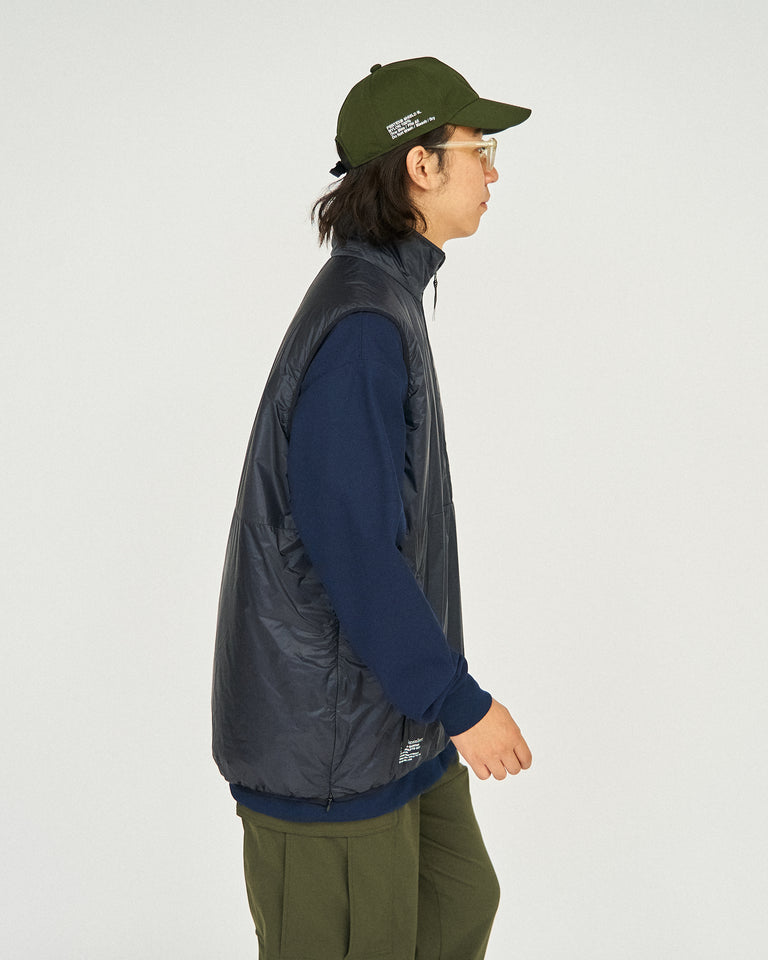 This vest uses QUAMTUM PRO. which is made from PERTEX QUAMTUM. which is extremely lightweight and has excellent strength. with an ultra-thin water-resistant coating. and PrimaLoft. which has heat retention. lightness. and flexibility comparable to down. is used for the filling.