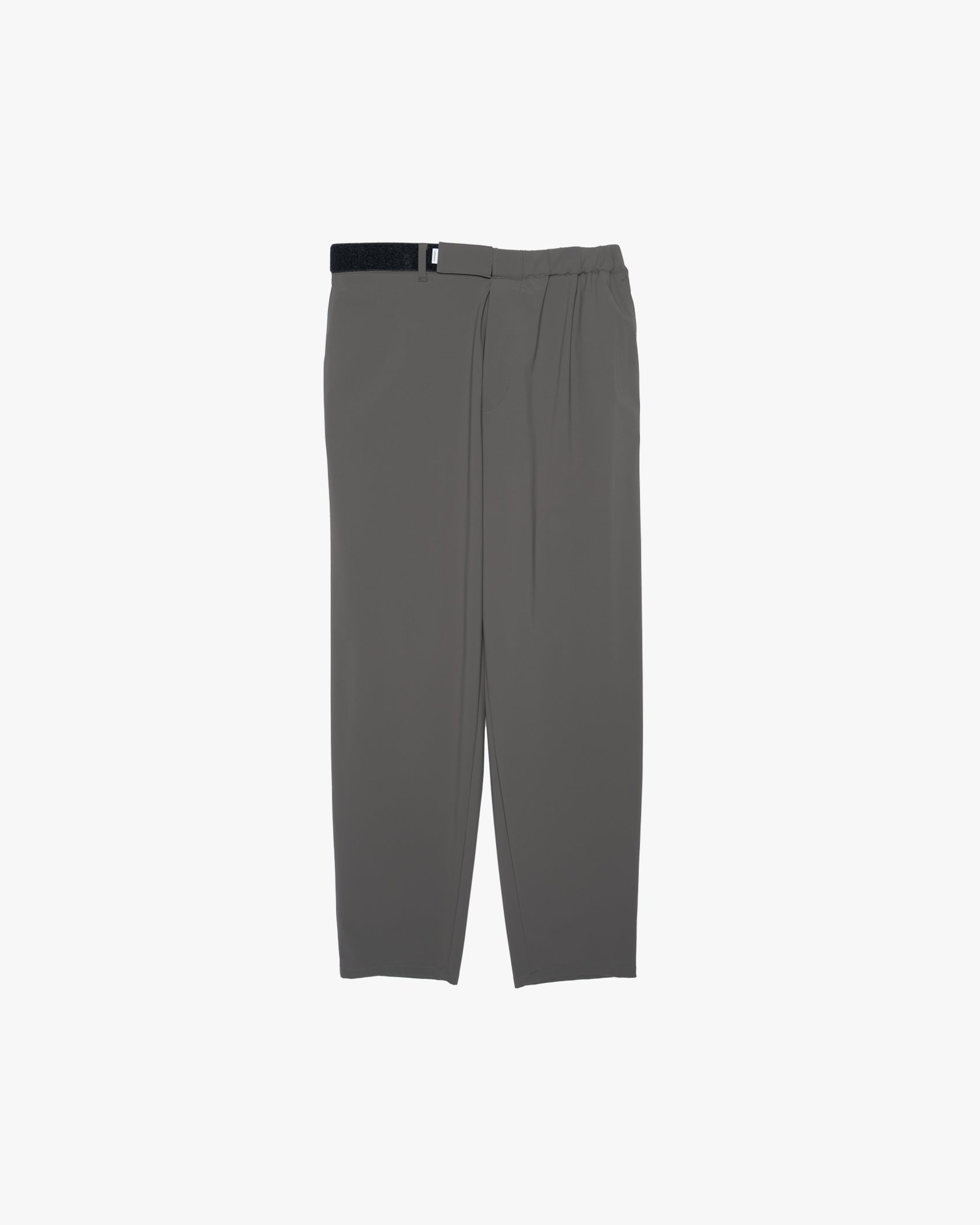 High gauge tricot made with delicate nylon thread. It has a clean look. a smooth texture. and a refreshing stretchy feel that makes it comfortable to wear. It is a functional material that is water repellent to prevent light rain and dirt. The brand's standard tapered pants can be easily adjusted to fit the silhouette by adjusting the waist size.