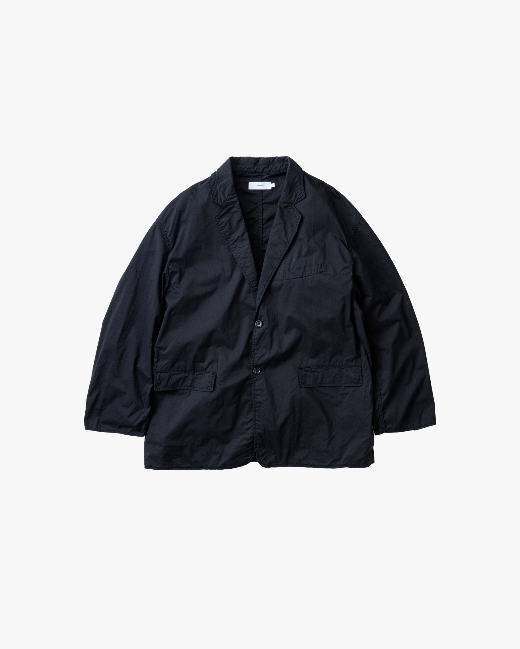Cotton typewriter is a very delicate material that is densely woven. giving it a smooth texture and a moderate firmness. This single-breasted jacket is made with this fabric on both the front and back. It is wrapped and sewn with thick thread and dyed after production. giving it a unique texture and a crease caused by shrinkage. It has a voluminous boxy silhouette and is available in three sizes to suit your body type.