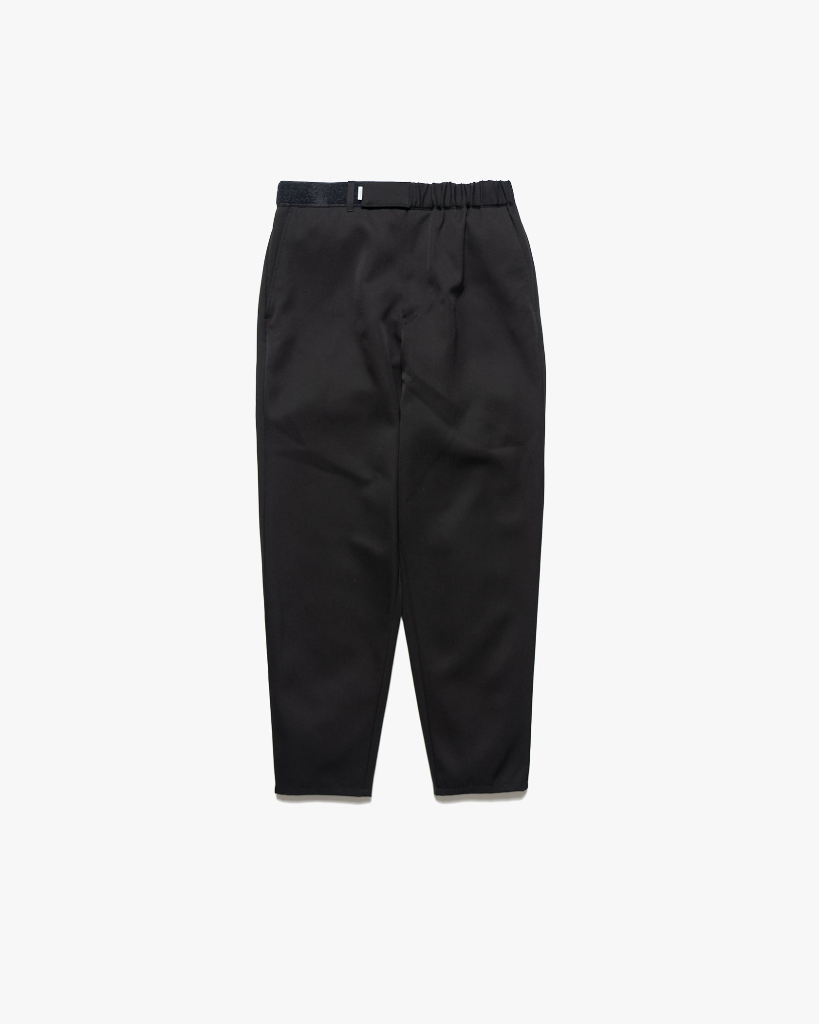 Wool gabardine. made with careful attention to the balance of warp and weft threads. features a beautiful twill weave. moderate firmness. and supple drape. A special resin is permeated into the wool fibers to give it a filament-like luster and clear texture. Graphpaper's classic chef pants have been slimmed down to a new silhouette. The details that allow you to easily adjust the waist size remain the same. but the silhouette has been completely redesigned to fit even slimmer bodies.