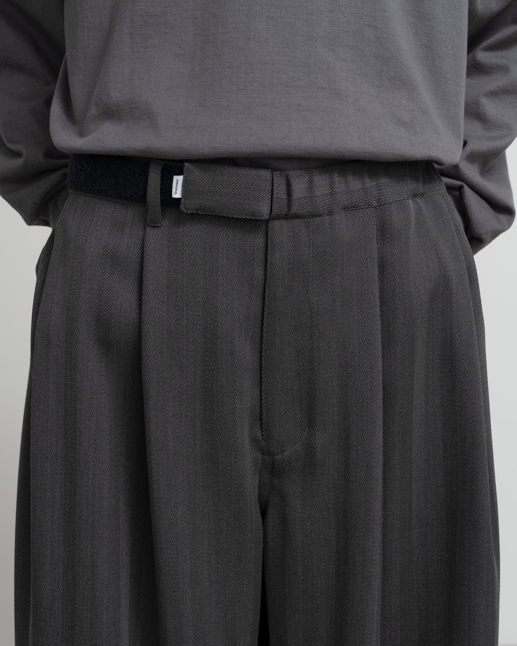 A special collaboration between Graphpaper and is-ness. where items from both brands are edited from a new perspective. The design is based on is-ness balloon pants. which have a roomy waist and a three-dimensional silhouette that tapers from the knee down. and combines the waist belt details of Graphpaper's iconic chef pants. The design neatly ties together the voluminous waist and makes it easy to put on and take off.