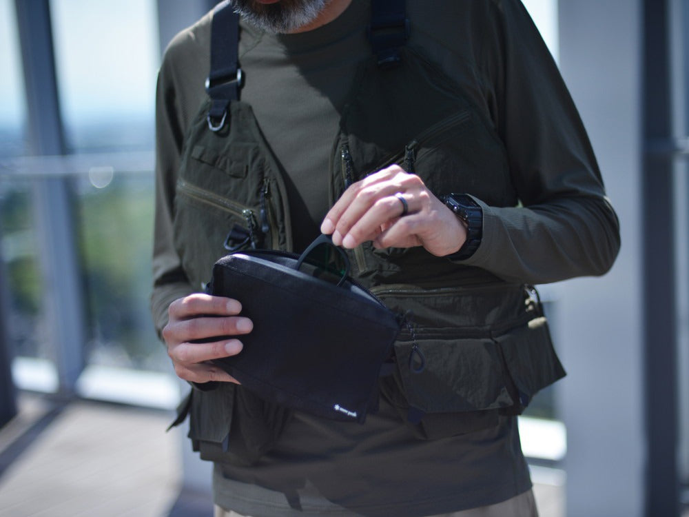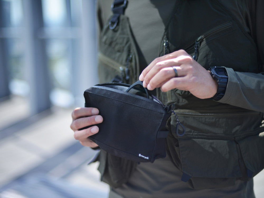 The case can be used to carry sunglasses and is decorated with the Snow Peak logo.