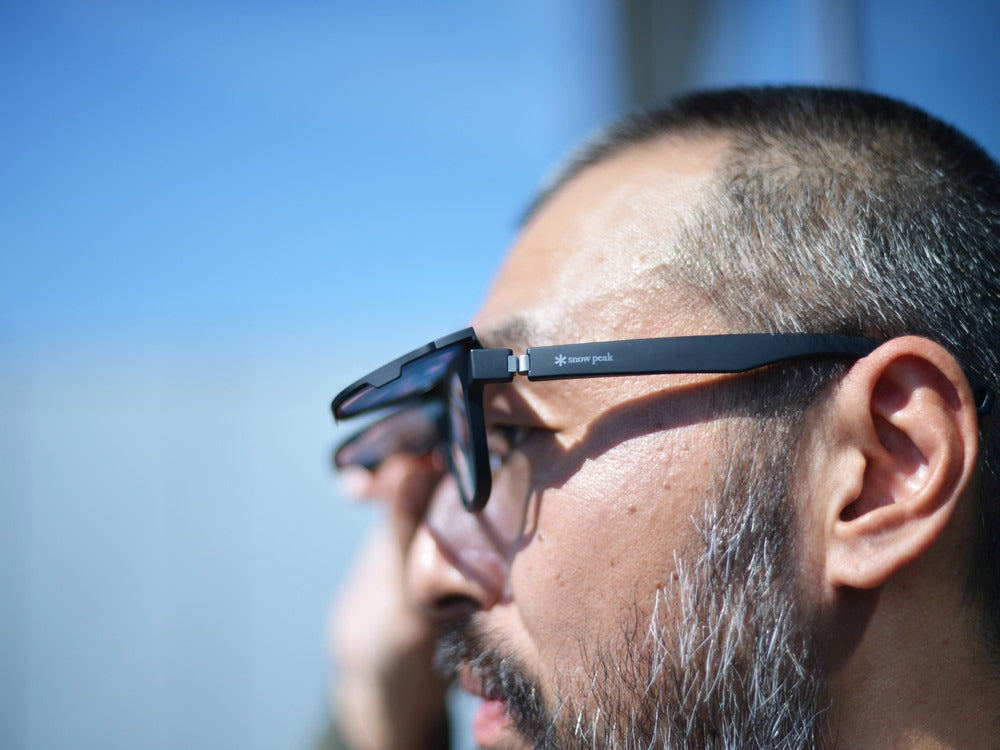 The limited edition Snow Peak collaboration model of JINS Switch allows you to quickly switch your field of view with one touch. and is a tough pair of glasses that can be used in a variety of different ways with a set sold separately.