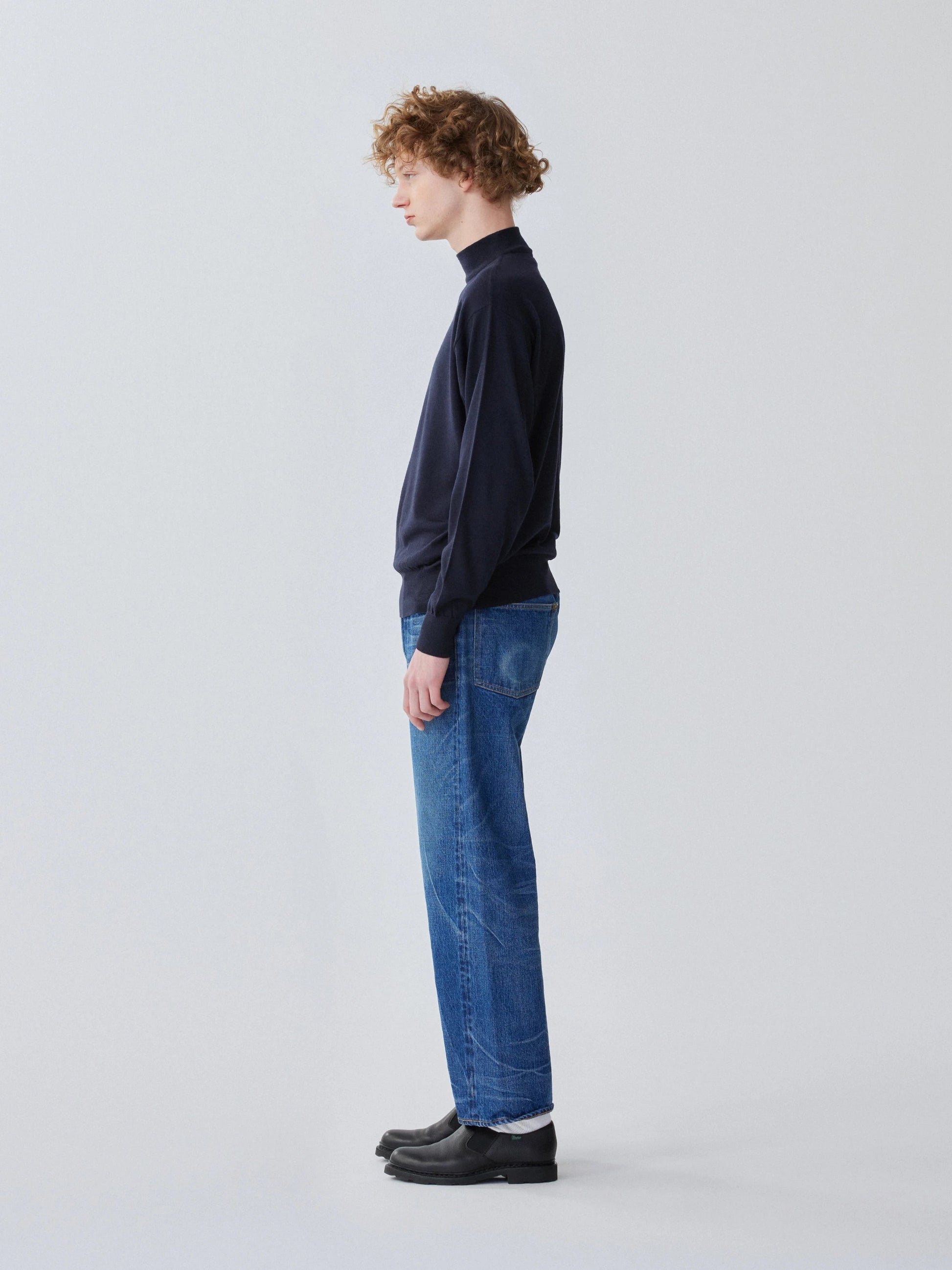 High quality Sanforaquin cotton is nep and dyed with pure indigo. Slowly woven on an old-fashioned loom. It has an uneven texture.