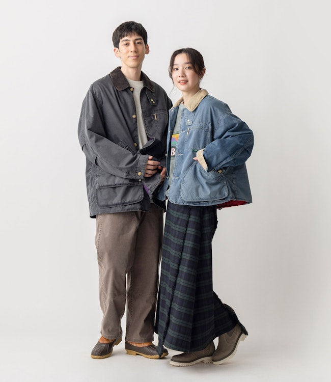 The JAPAN EDITION collection was developed by a Japanese design team to suit Japan's climate and trends. Originating from a hunting coat first introduced in 1924. our classic Original Field Coat has been updated in terms of material. specifications. and fit. High-density taffeta. made from a blend of indigo-dyed fine cotton yarn and hollow polyester yarn. is woven with two layers of thin padding between the lining for superior warmth. Furthermore. stonewashing after sewing creates a natural faded look and soft texture. reminiscent of years of wear. resulting in a lightweight. enveloping comfort.