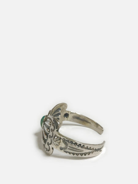A sheet of silver is cut off in the shape of a butterfly. and the butterfly and shell points are hammered out strongly from behind by hammer work. a traditional technique of Indian jewelry. and the surrounding area is finished by stamp work. Just by putting one on your wrist. it will give off an enormous impact. One size fits all. so please adjust it to fit your wrist.