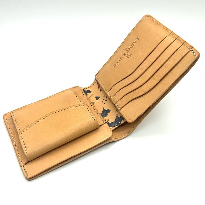 This is a bi-fold wallet made of LARRY SMITH's original saddle leather. commonly known as Lawrence leather. The wallet has a fold-over design with a lot of storage space and is more practical. The more you use it. the more you will enjoy the ageing process of the wallet.