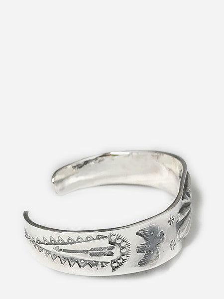 A butterfly shell cast in the center of the bangle and Arrow and Thunderbird designs on the sides.