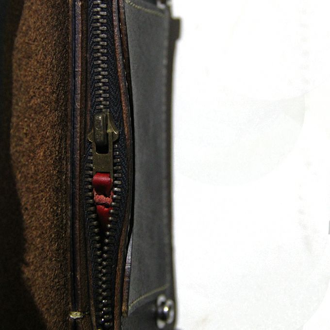 Custom wallet with moulded grained pattern on the surface. Zip with TALON 42. One note pocket. one coin pocket and three free pockets. All processes from dyeing to sewing are done by hand by craftsmen. resulting in a high quality finish.