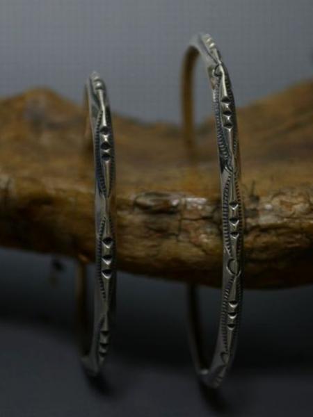 The triangular portion of this bangle bracelet for men is finely stamped with stamp work.