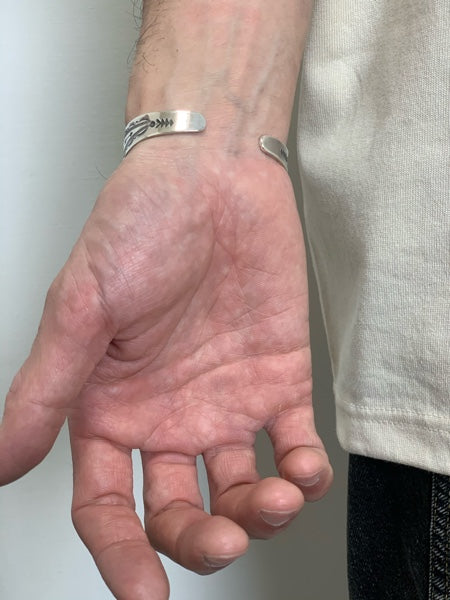 The entire bangle is stamped with an arrow-shell-leaf pattern and has an outstanding design.