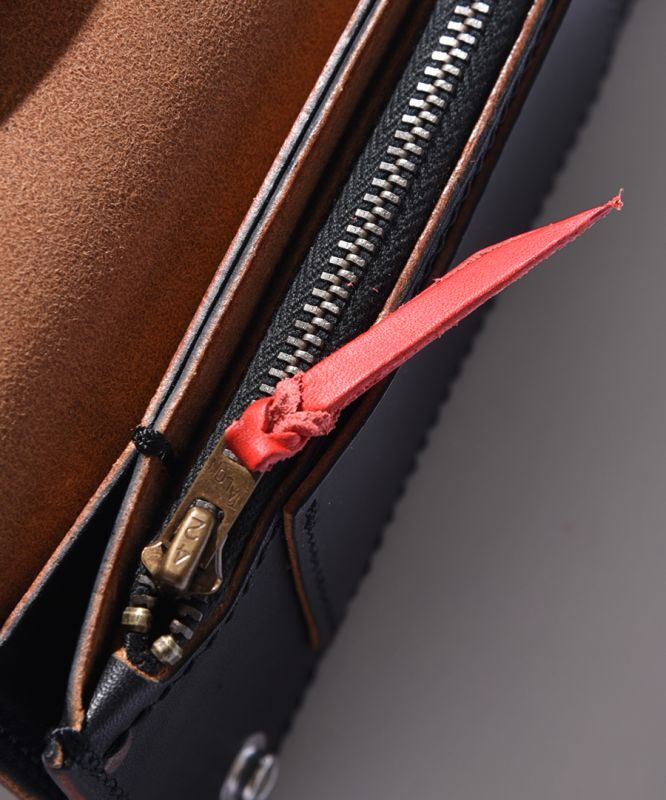 The bag is a trucker's wallet using LARRY SMITH original saddle leather called Lawrence leather. and sticking to the old-fashioned manufacturing method.