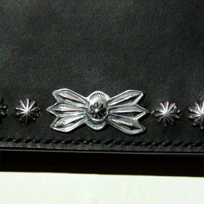 One pocket for notes and one for coins. and three free pockets are placed for storage. Design work with silver conchos on the body.