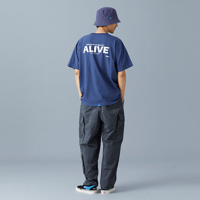 The left hem has a utility pocket. The silhouette is slightly thicker than the standard 6-pocket pants. and the unique texture created by the basket wash is also a highlight.