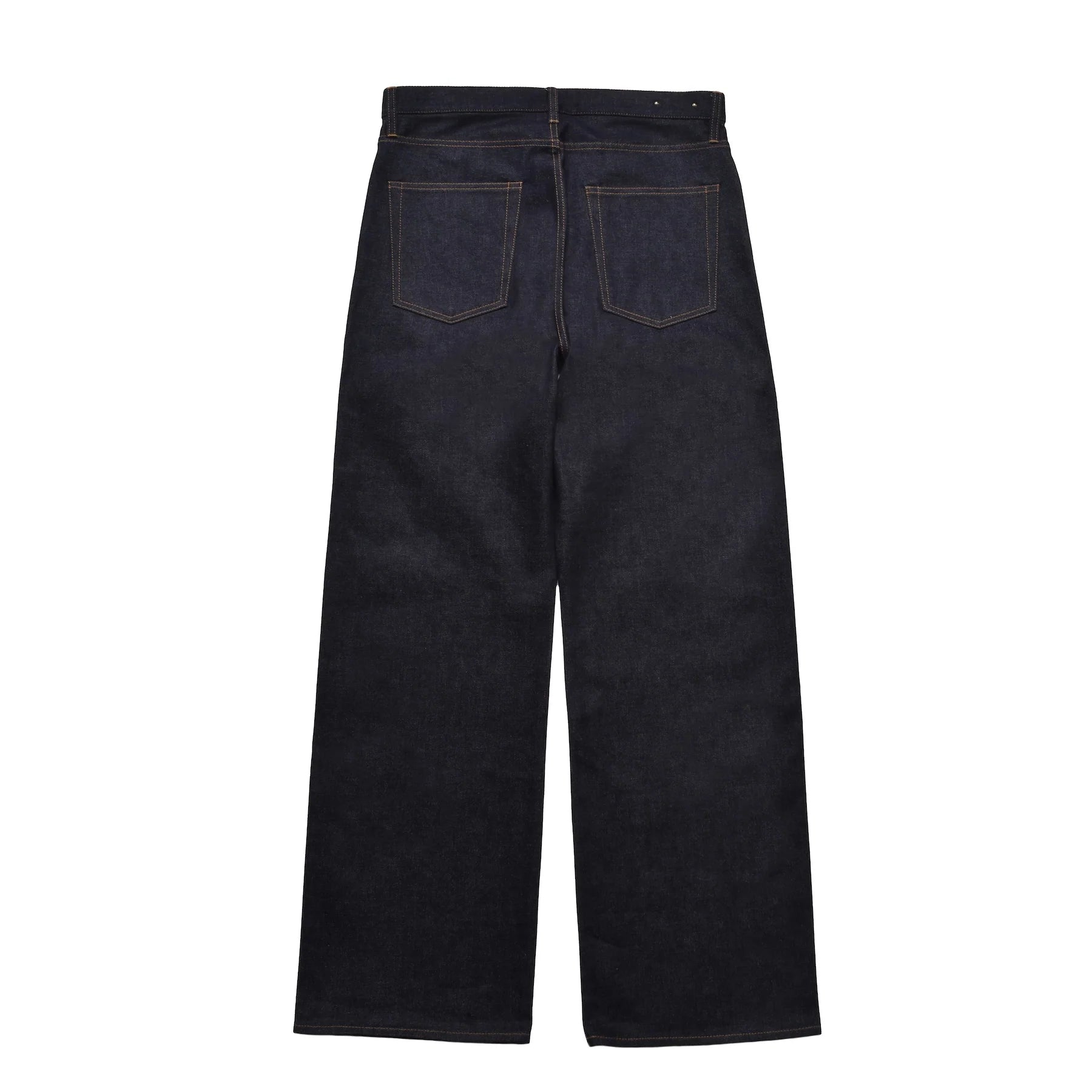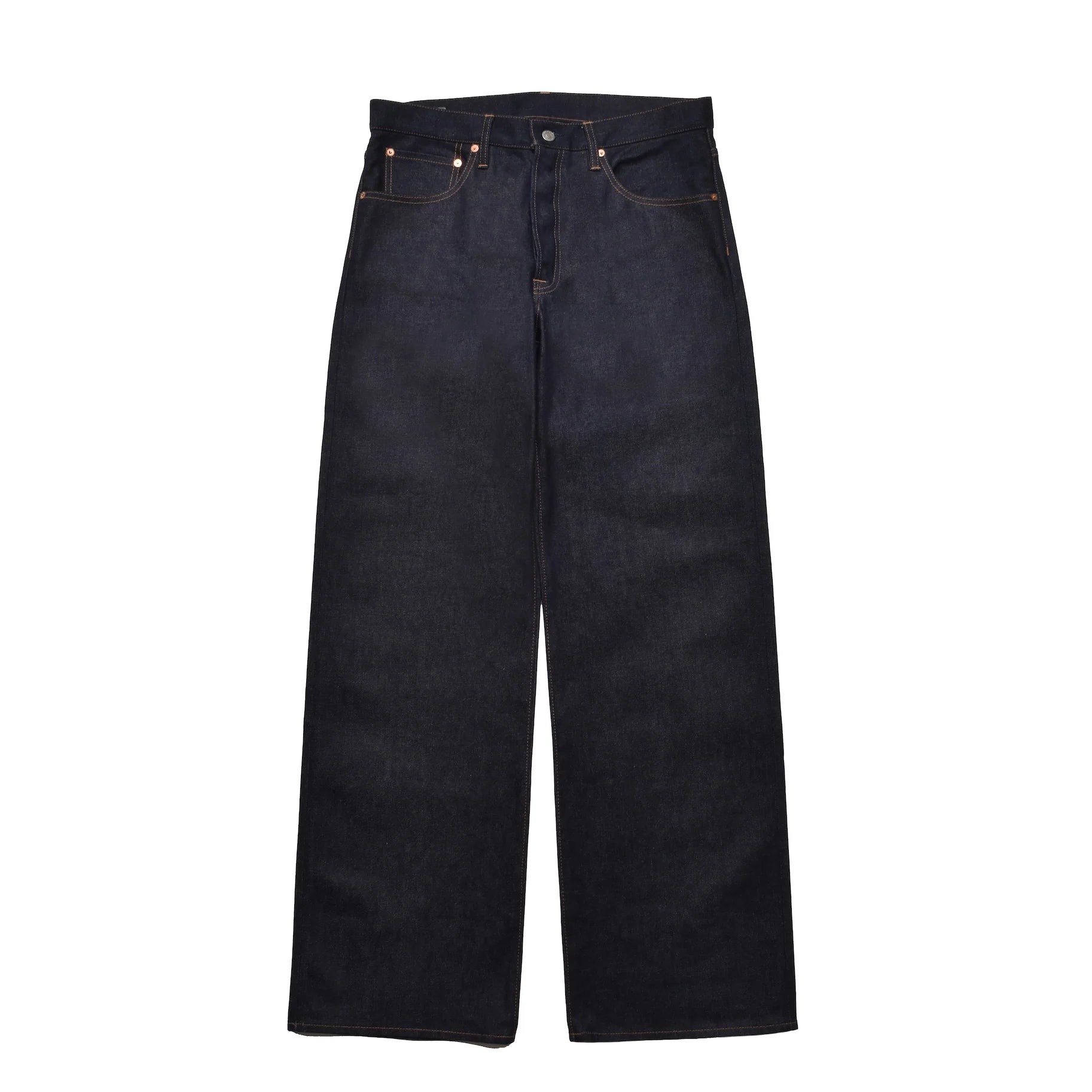 These wide-straight. five-pocket jeans are crafted from 14oz indigo selvedge denim with a ring-straight weave and a rigid (unfinished) finish.