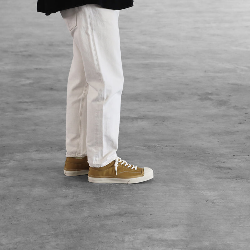This model has its roots in training shoes produced in the 1960s. The characteristic centre seam design minimises the overlap of the thicker material. which reduces stress on the foot and is said to be suitable for exercise. The material is newly adopted cotton nylon with excellent durability. The outsole has been updated to a more abrasion-resistant specification.