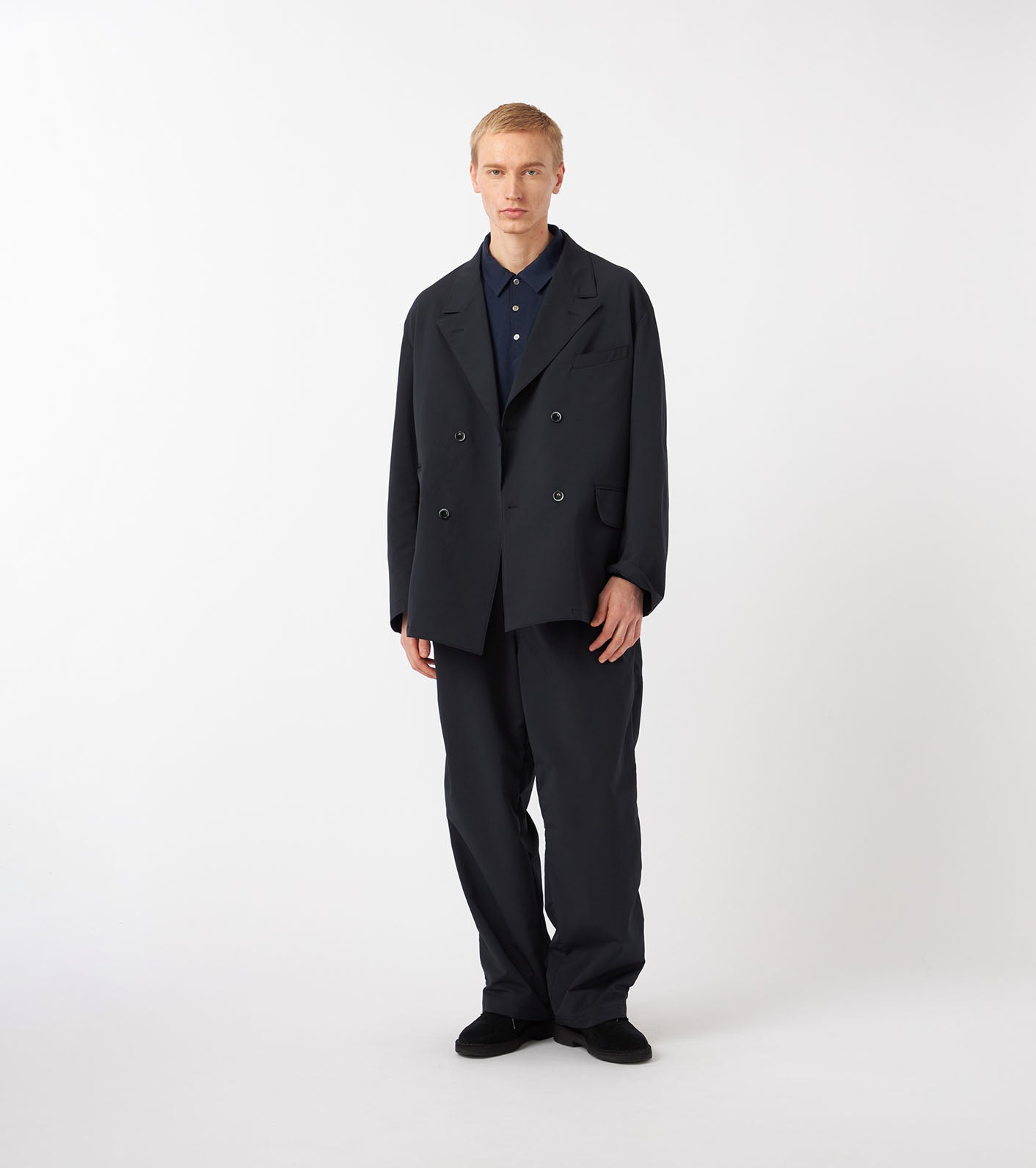 ・Four-button double-breasted jacket made with ALPHADRY®. featuring excellent moisture-wicking. quick-drying. and stretch properties.