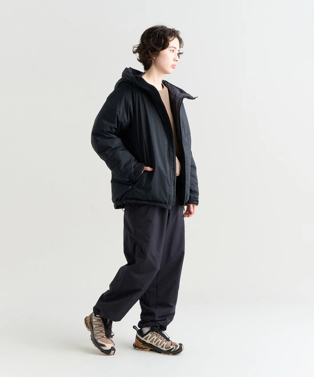 The simple design blends seamlessly into any setting. from casual city wear to outdoor adventures like mountain climbing and camping. The slightly loose silhouette allows for easy movement even when layered with a thick inner layer like a hoodie or sweater.