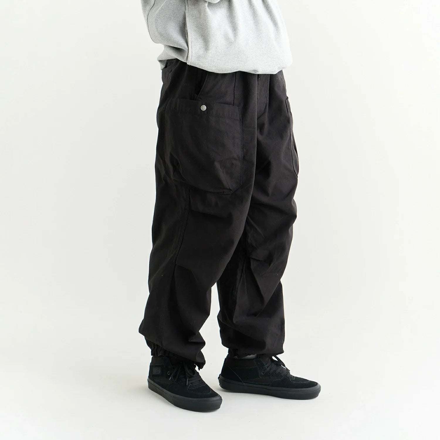 〈Item Descriptionã€?br>These easy cargo pants are crafted from back satin fabric. combining ruggedness with elegance. Based on a fabric popular in military and workwear. they combine NANGA's signature comfort with a modern silhouette.