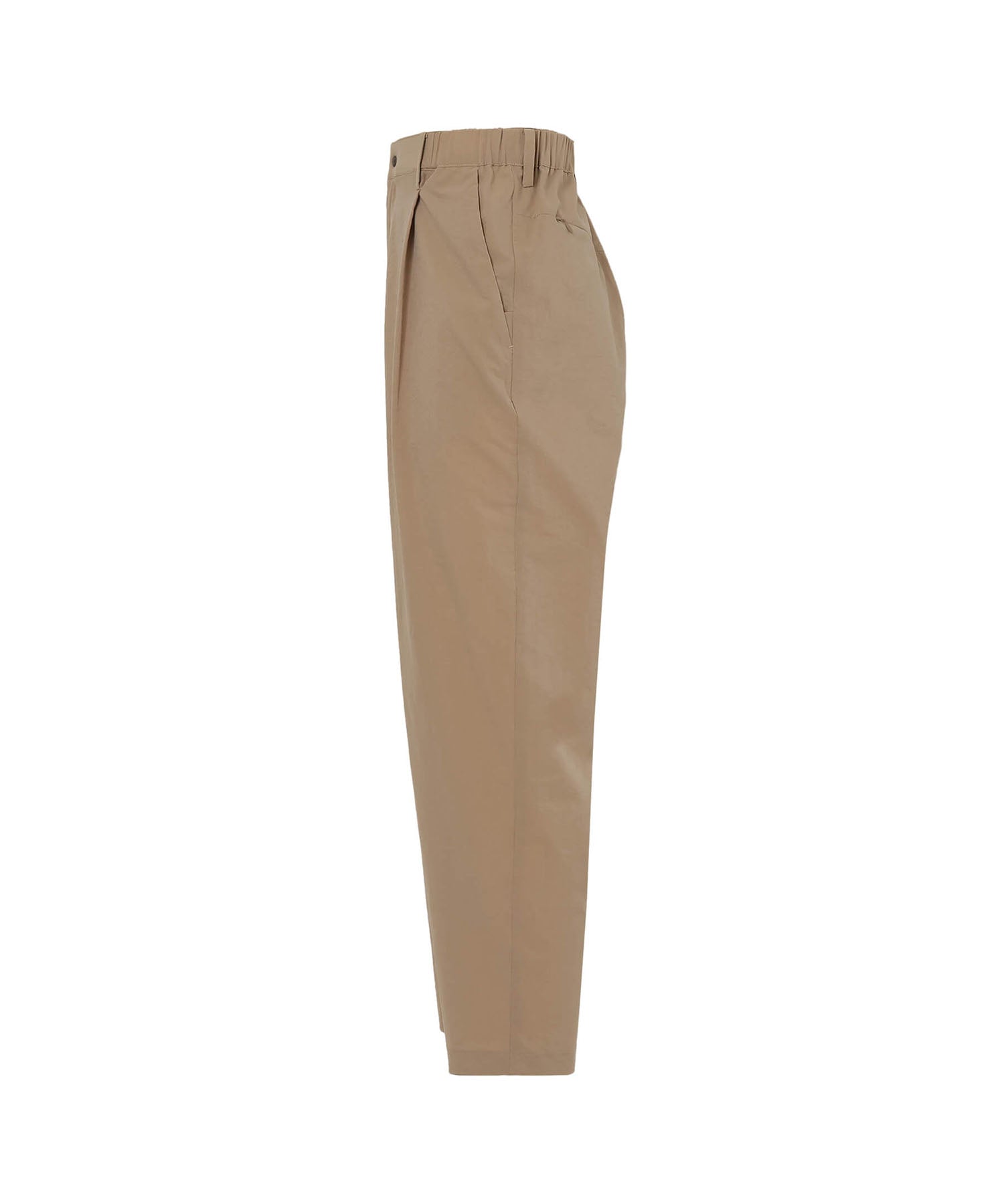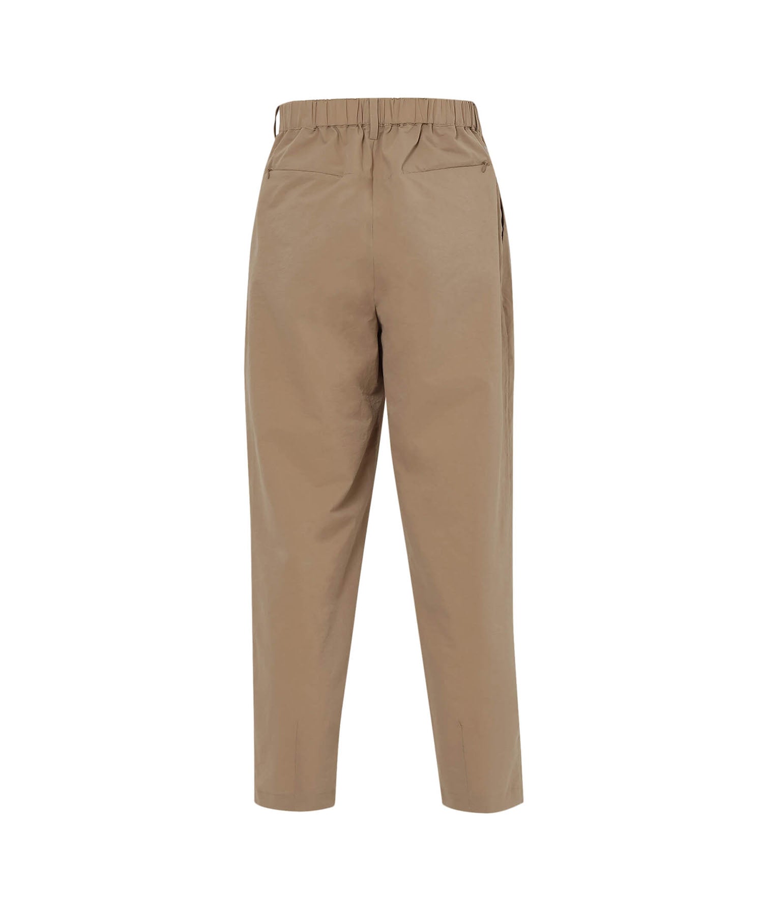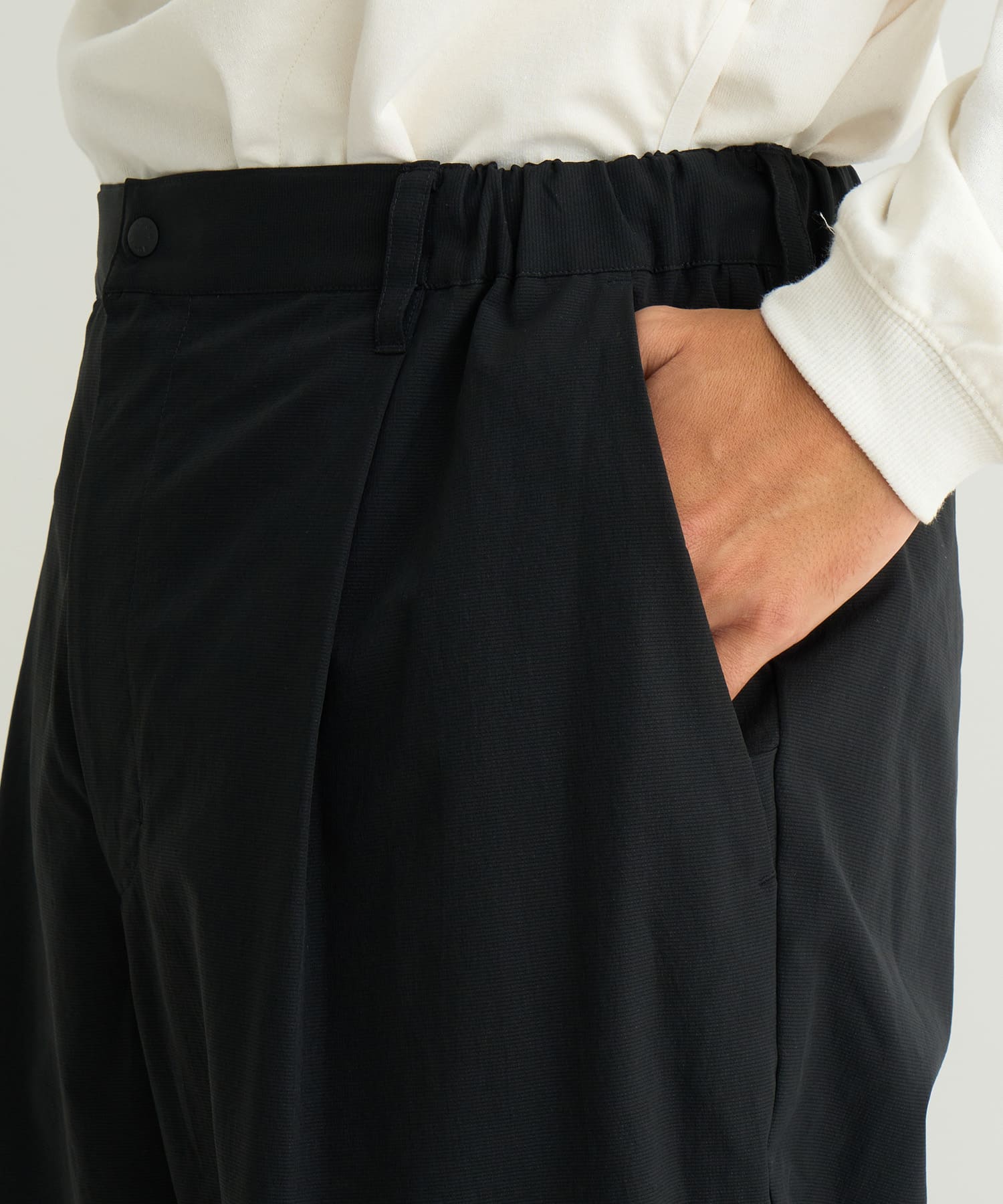 Tuck tapered pants made of lightweight material "DotAir®" that combines breathability and sweat absorption and quick drying. The special weave structure creates ventilation holes throughout the fabric. preventing stuffiness. and keeps the pants dry and comfortable despite being full-length.