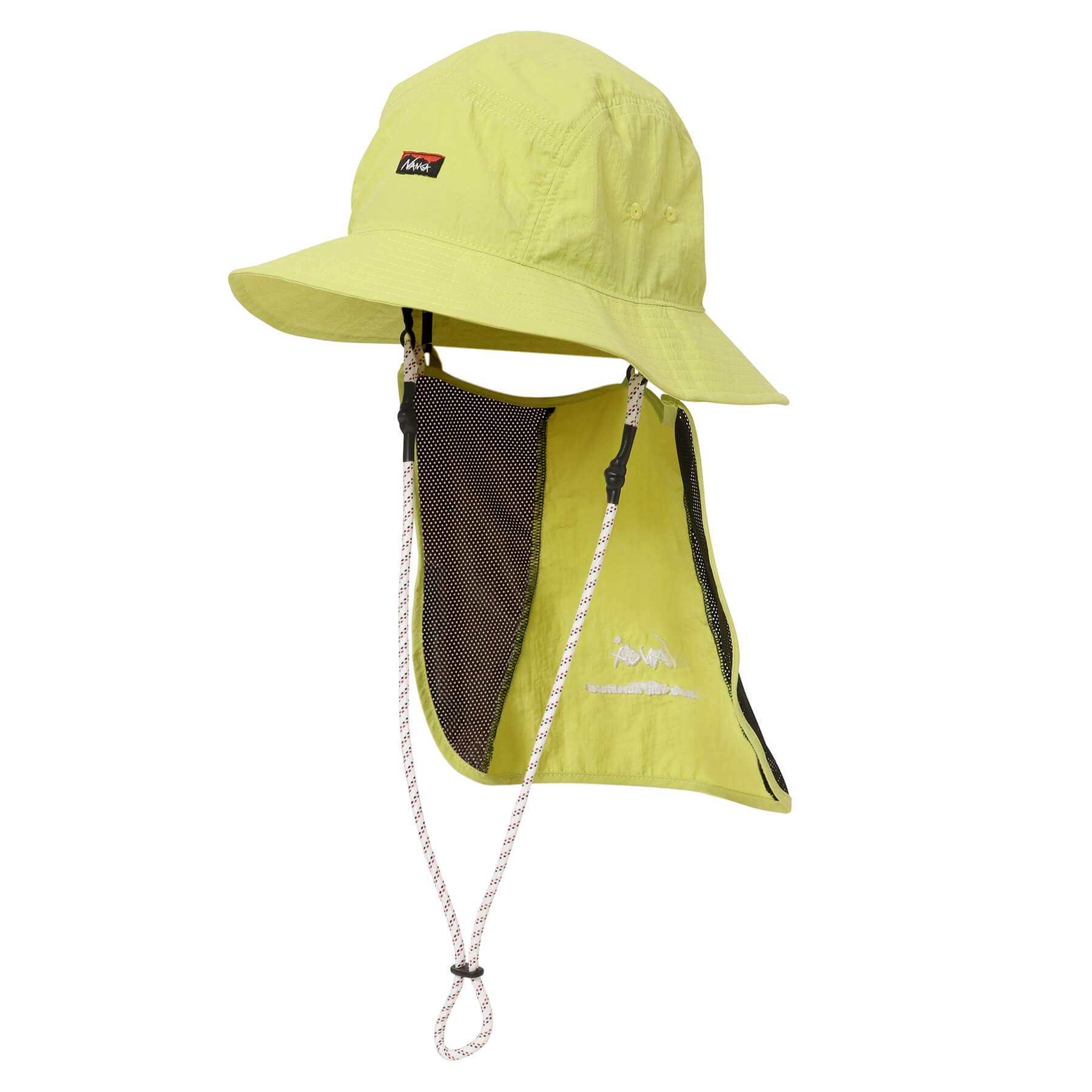 The chinstrap is Nanga's original mixed cord. which not only reduces misalignment when worn. but also serves as an accent. A neck cord is also included for convenience on windy days.