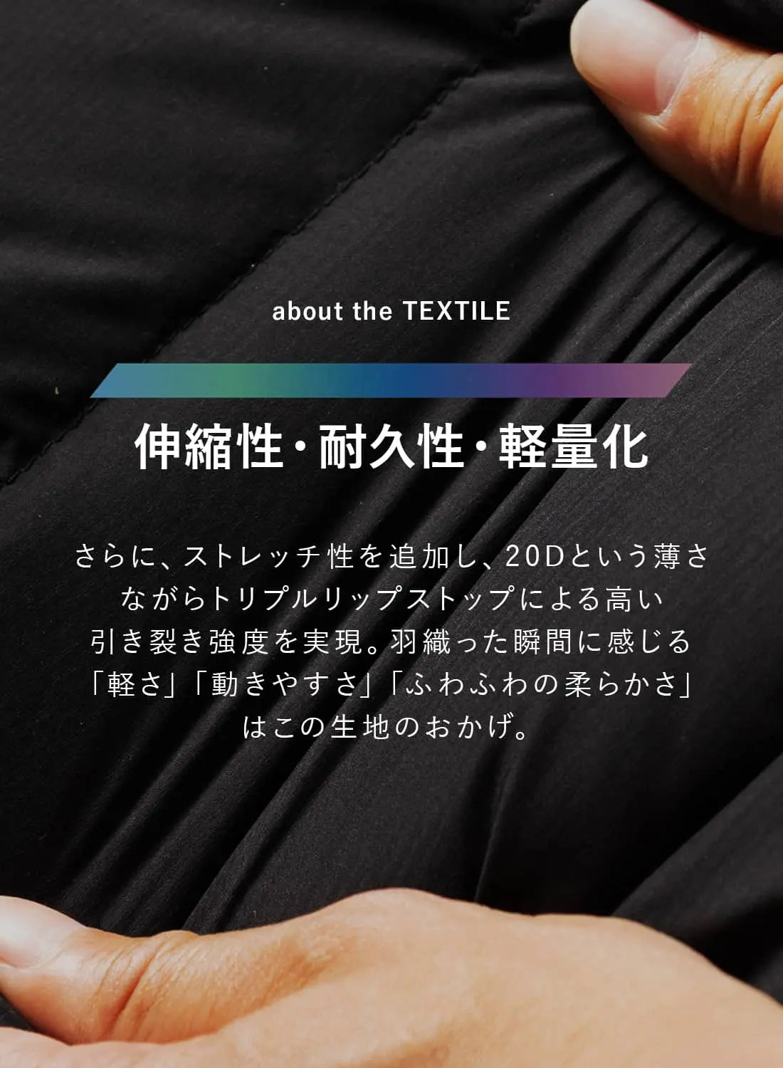 By maximizing the expansion efficiency of the down. we have achieved an even warmer and more comfortable feel.