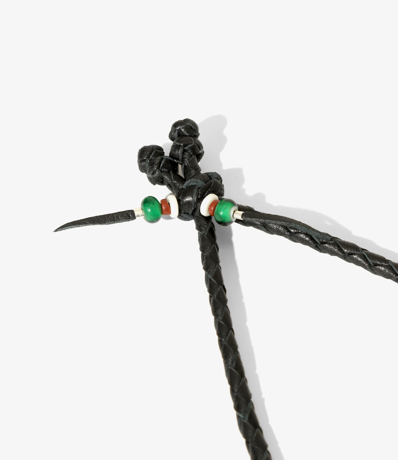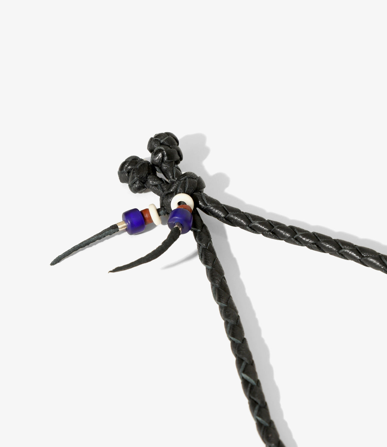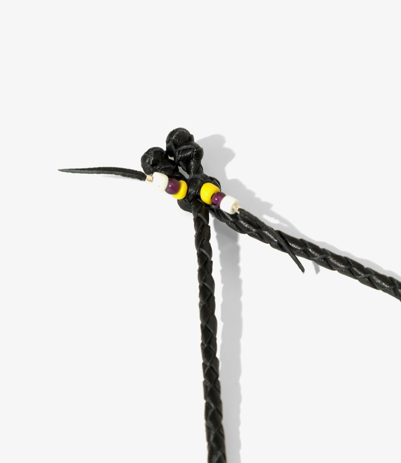 Amarillo. based in Sapporo. Hokkaido. Japan. and NEEDLES have collaborated to produce a collection of leather items using mainly deerskin. This necklace is created by careful hand weaving. The combination of antique beads and textured deerskin is a unique item. The collection utilizes the leather of Ezo deer. which are hunted in Hokkaido in recent years due to the rapid increase in their numbers.