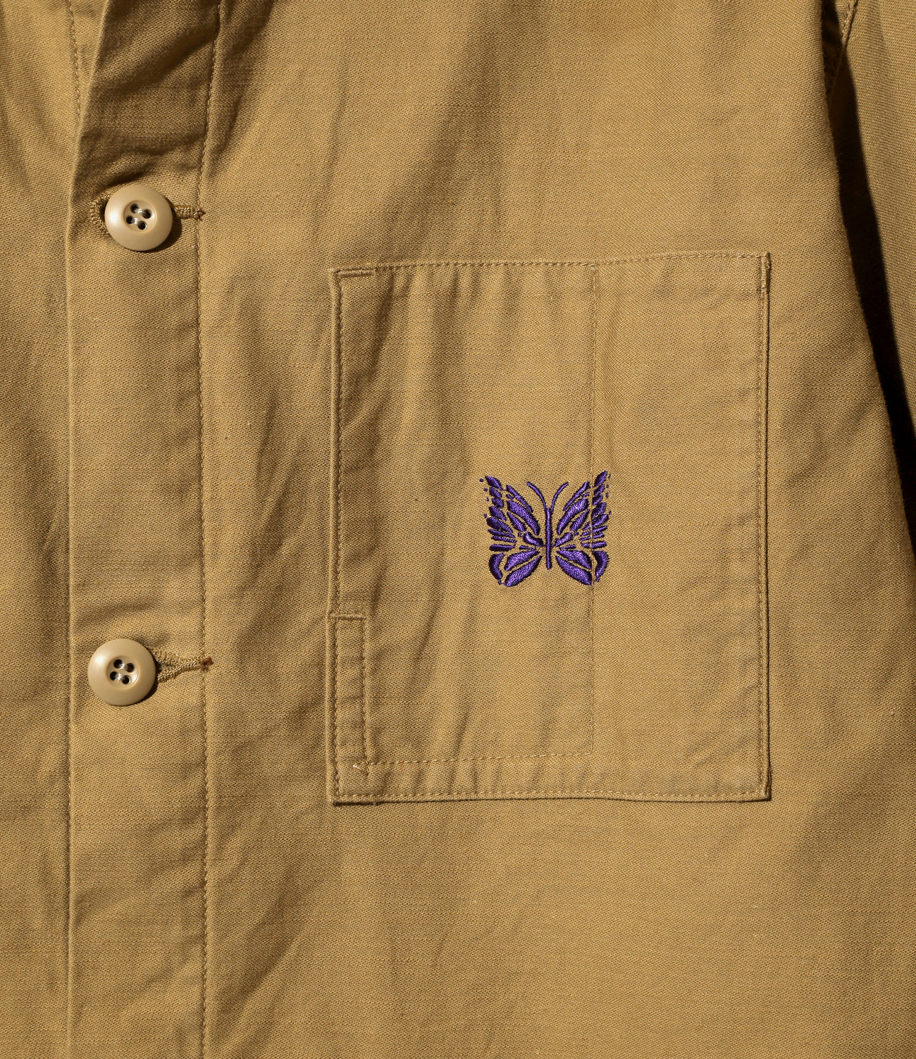 A work jacket with a simple design that is a staple of NEEDLES. Made of light-weight back satin material. this casual item can be enjoyed with the same casual feel as a shirt.