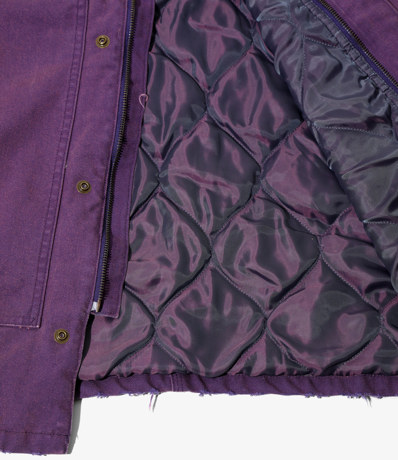 A lumberjack coat with a pocket design unique to workwear has been released. It is made of cotton material with a realistic vintage feel. reproduced by bio-washing and ozone bleaching. In contrast to the rugged look. the collar is made of velvet material. creating a contrasting design. The lining is made of purple quilting. typical of NEEDLES. and is finished with heat retention.