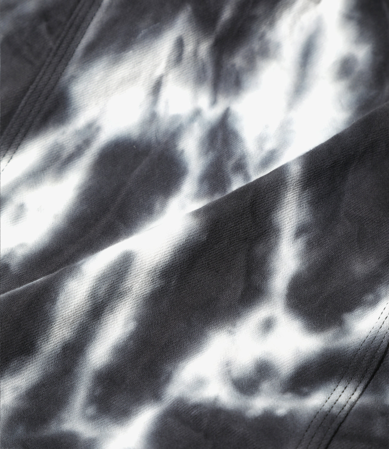 These work pants have a wide straight silhouette that exudes strength. They also have tough details such as triple stitching. and the waist is a relaxed string design. This limited collection is made with a stylish fabric that is tie-dyed on lightweight 8 oz denim material. The result is a very strong individuality.