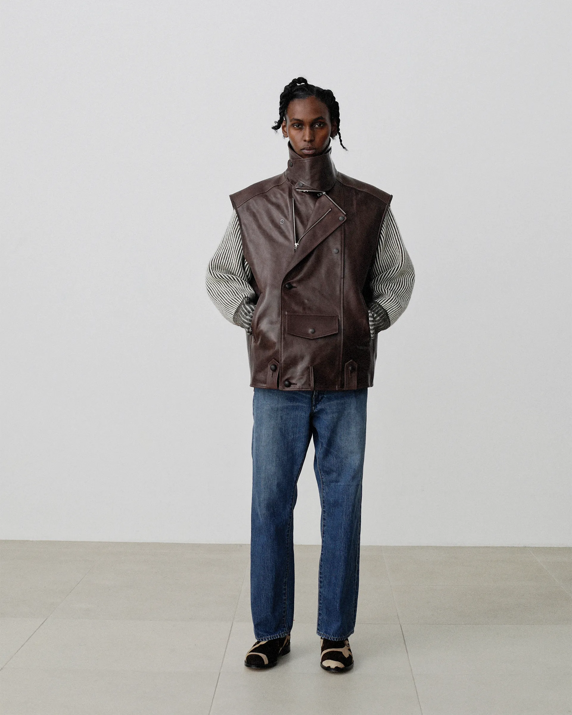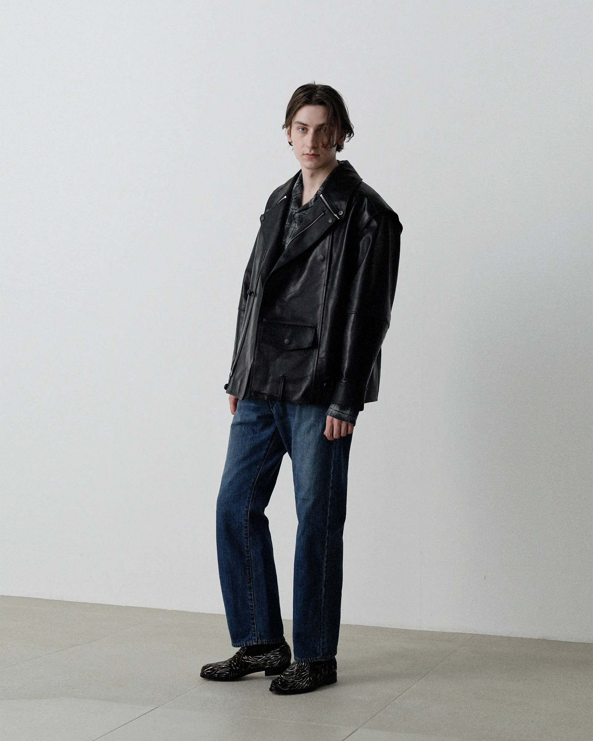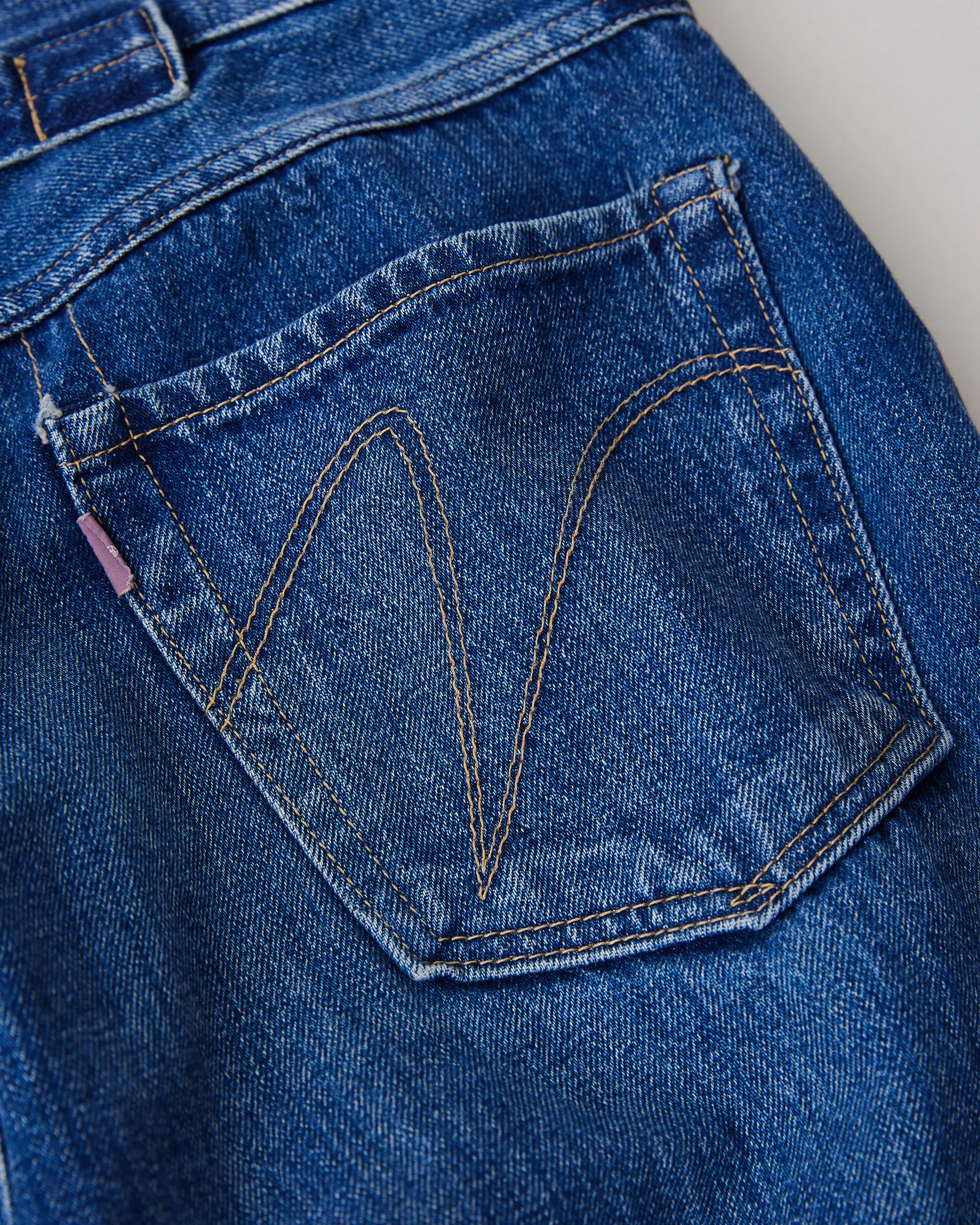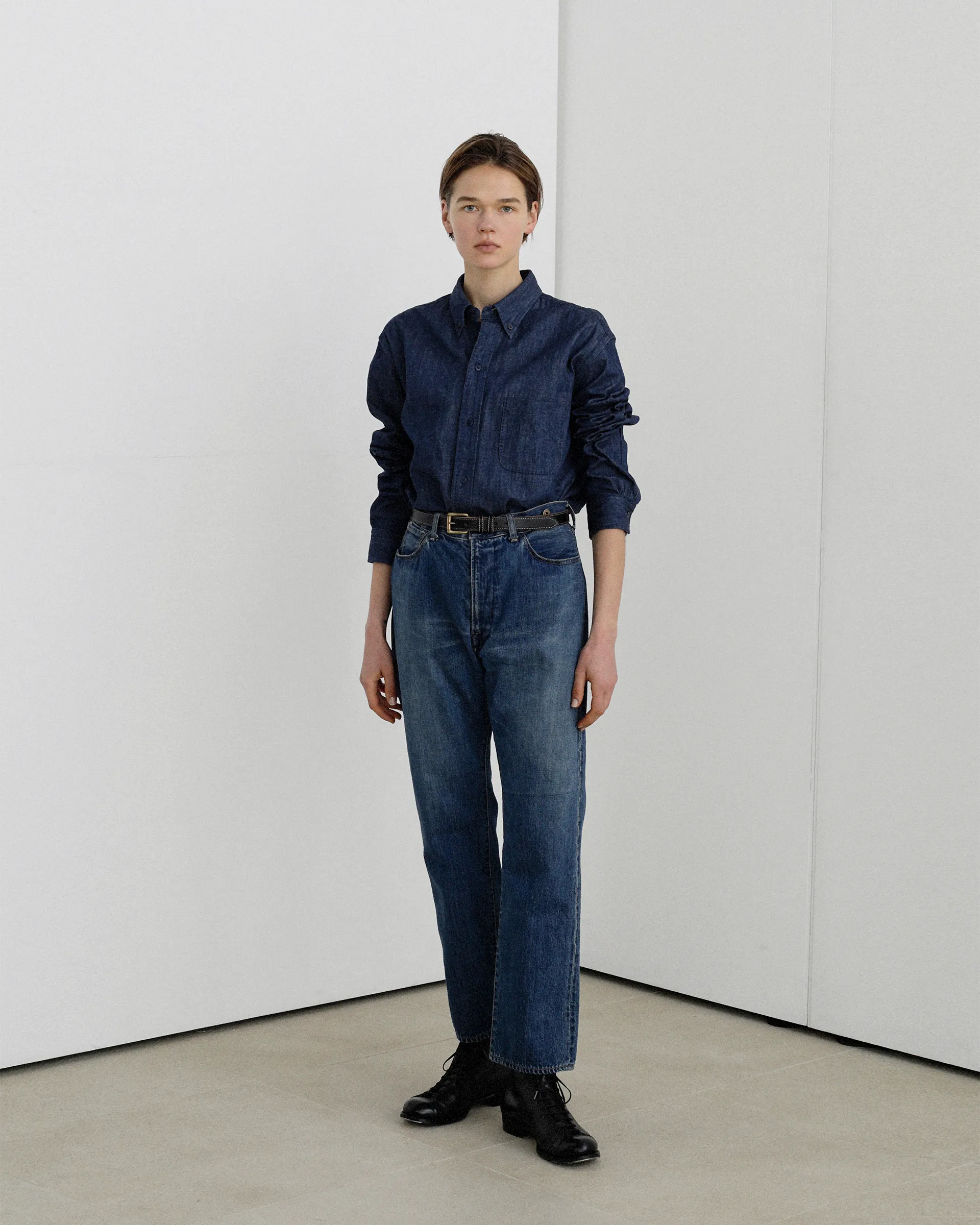 These 12.5oz selvedge denim jeans are made from American cotton ring-spun and woven on a shuttle loom. They are specially hand-processed to recreate the aged look with uneven yarn texture and color shading. The design references jeans from the 1920s to 1950s. and these narrow-cut 5-pocket jeans have a classic look with rounded back pockets and stitching work. The details of the back yoke and the cutting method of the fabric are carefully crafted to create the mood of early 1920s denim.