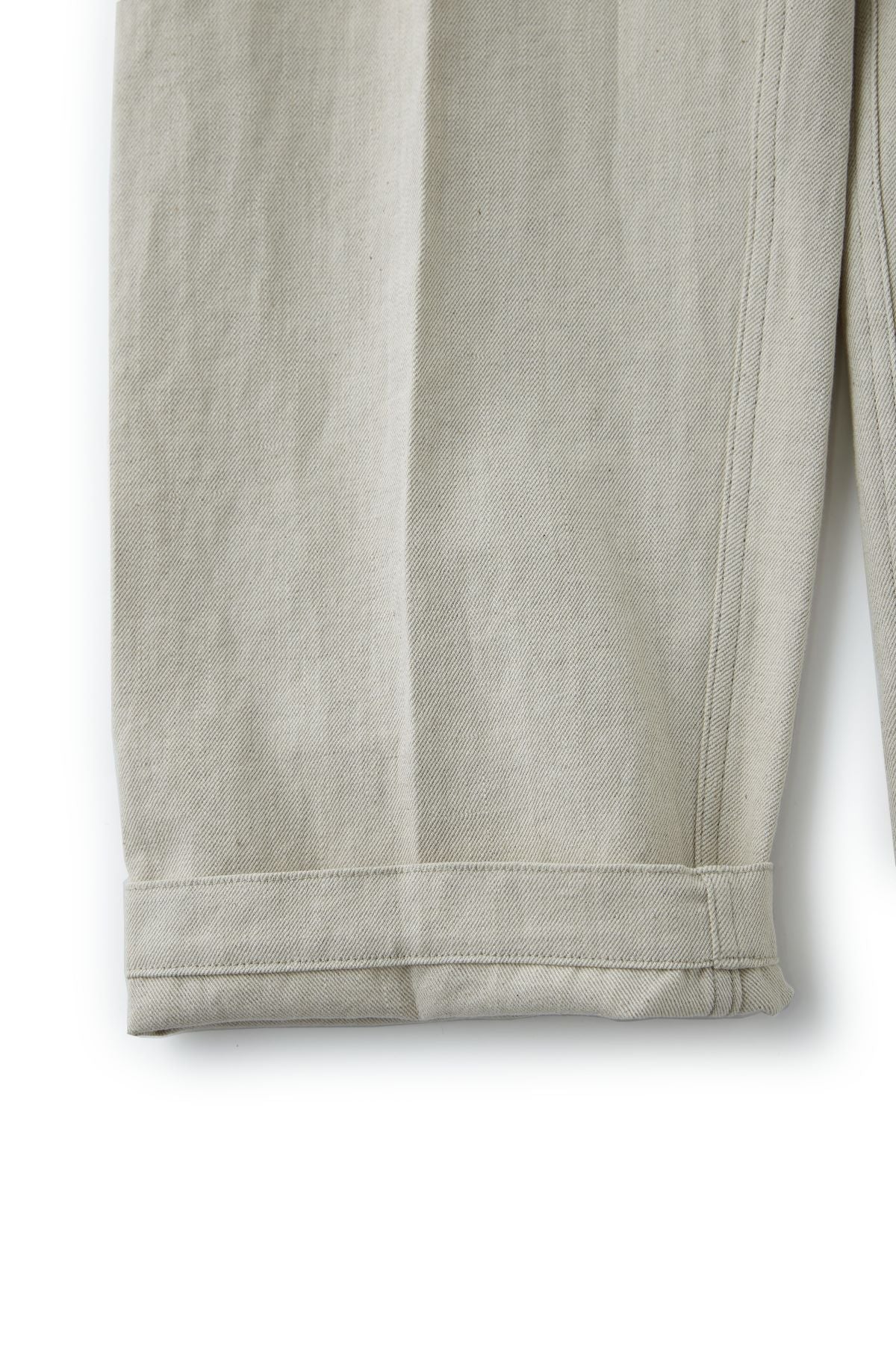 12oz Selvedge indigo denim This season's indigo denim is different from OLD JOE's original denim up to now. as it is made of what is called "rigid denim" with a crispy finish. and has a clear look without the fluff on the surface like the Kibata denim up to now. The texture with a touch of fluff also gives it a nostalgic feel. Of course. the denim is indigo rope-dyed No. 8 yarn. which gives it a subtle beige tinge. Like the Choir Jacket. these work pants will be available from the fall and winter season. The side seamless patternmaking gives it a unique feel on the skin when you put your leg through it. and the silhouette line is unique. Like the jacket. this piece is designed by combining archival piece details from various decades.