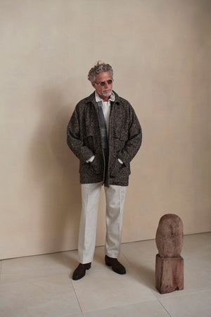 The signature piece. the Smarty Trousers. are inspired by dress trousers from the 1930s. with classic details. a deep rise. and a modern tapered line. making them suitable for a wide range of outfits. The fabric is 1/16 wool flannel. Made with carefully selected domestic TOP yarn. they are available in a unique range of deep colors.