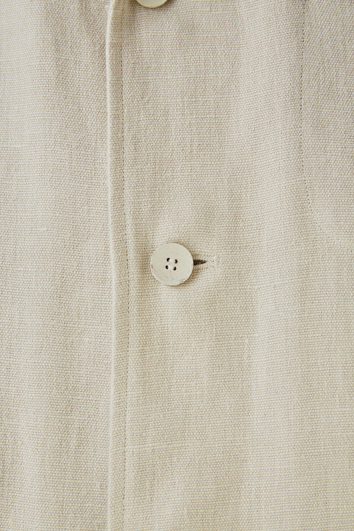 A new type of notch lapel work jacket. The heavy material and the design of good old European work clothes are a perfect match. The wooden buttons. which have a worn-out feel. are dyed and aged one by one by woodworkers.