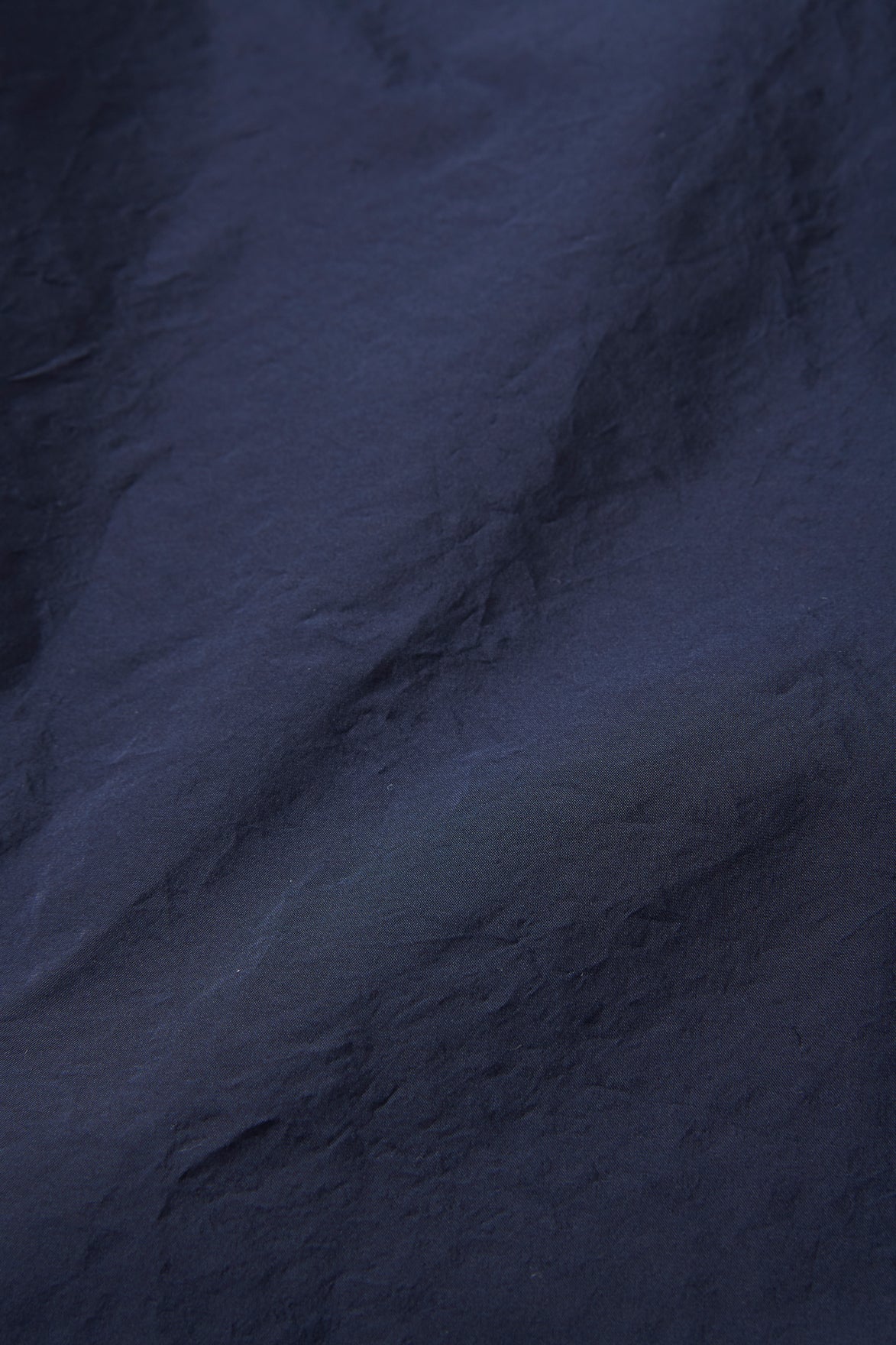 The material is yarn-dyed taffeta from Plateau FABRICA. Italy. Fine nylon is used vertically to achieve a firm feel and exquisite luster. It is characterized by a firm yet soft texture. The finishing process is washed and tumbled to express a natural wrinkled feel.