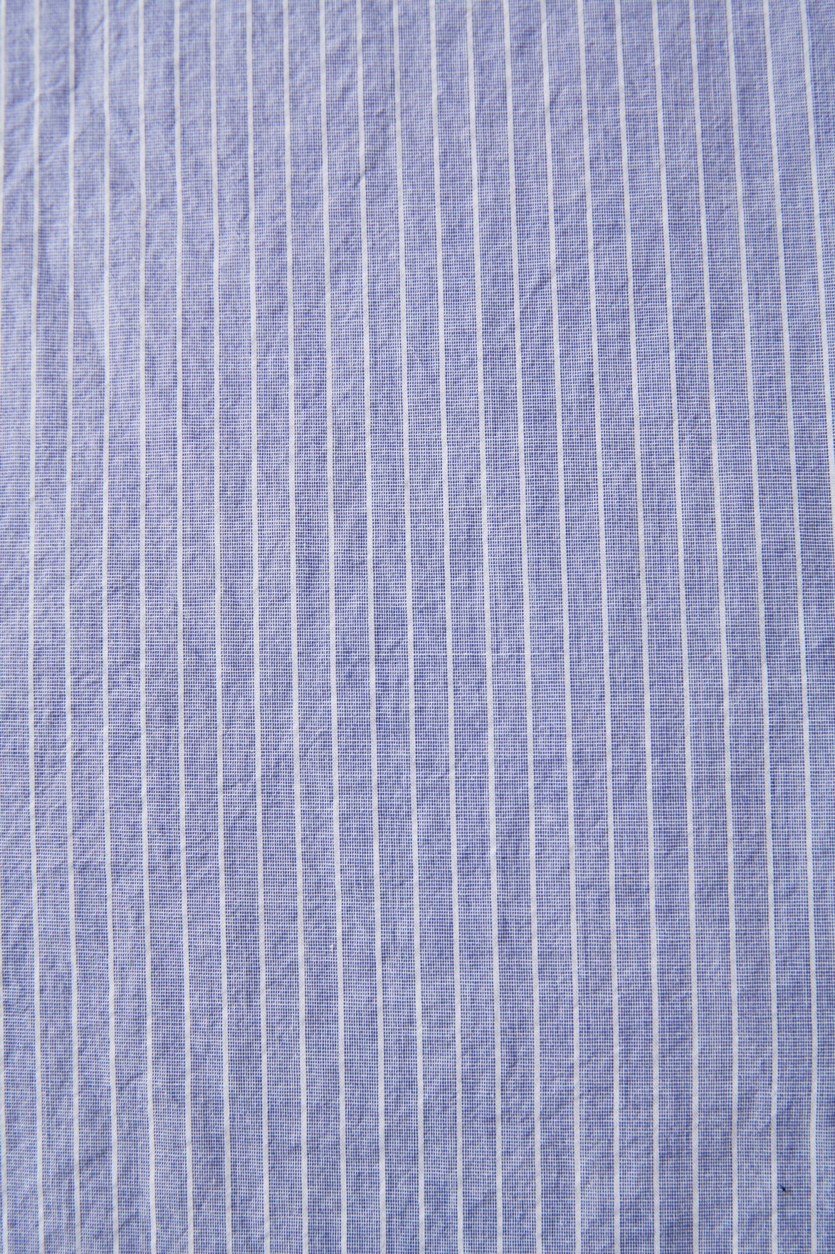 The material is a fine-count light poplin fabric with 70/1 cotton compact yarn used for the warp and weft. which has been washed to give it a natural finish. The yarn used is a Pima blend. a long-staple cotton yarn.